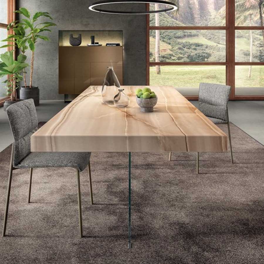 Daniele LagoIn addition to the customizable legs in extra-clear or smoked glass, the tabletop is also available in different finishes: from the warmth of Wildwood oak wood to the elegance of glass and XGlass. The Air table arises from the unusual idea of contrasting usual volumes: two elegant, almost invisible supports hold a thick and wide tabletop. Sober and surprising, this table seems to float in the void, thanks to the transparency of the solid supports in tempered glass, giving a feeling of great lightness to the environments.