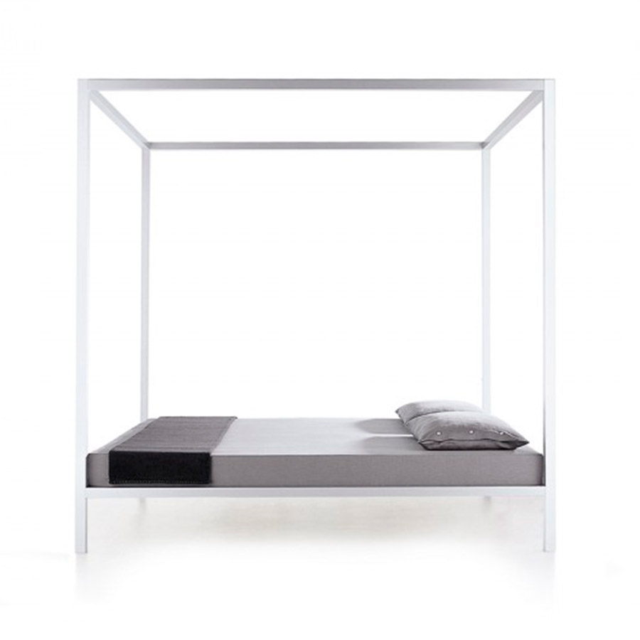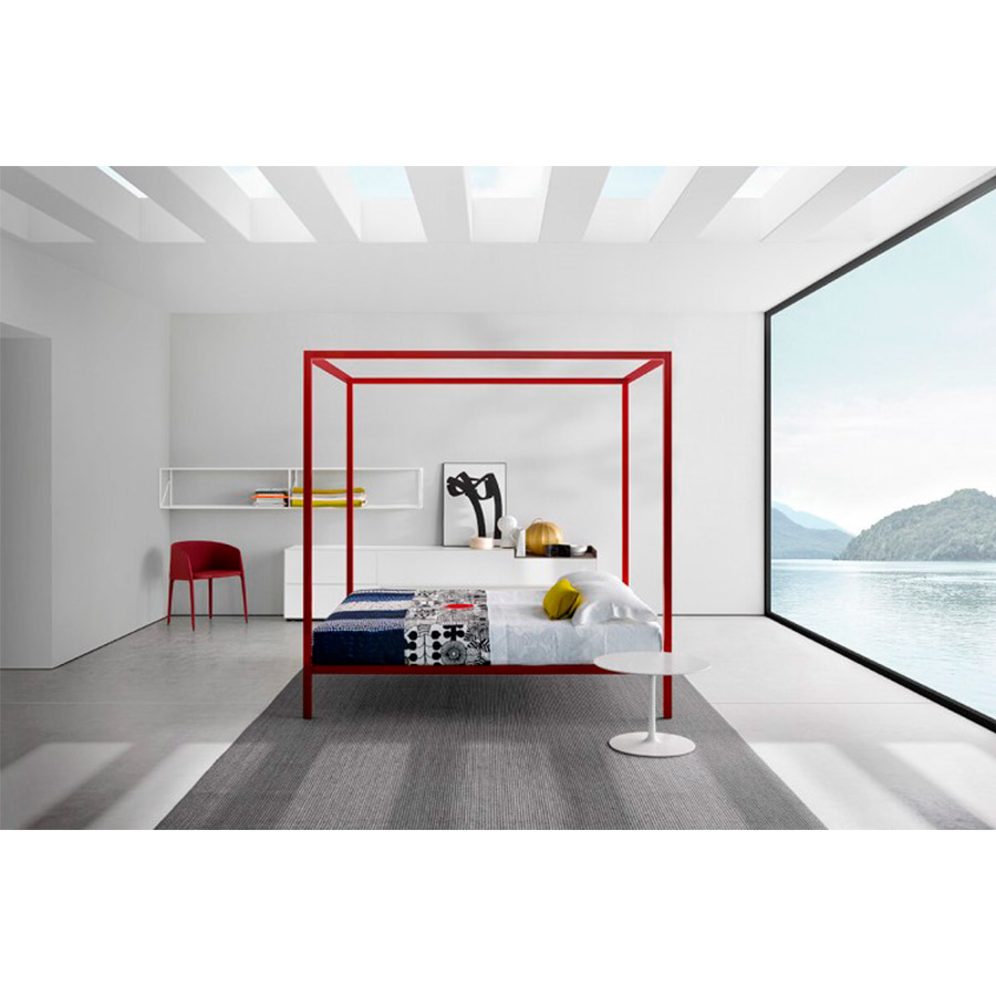 A bed made of aluminum, light, and flexible material gives a contemporary touch to this furnishing solution, which also comes in the romantic version with a canopy and a 57 cm high headboard. The lacquered model is very fresh, in bright painted aluminum, in the following colors: black, white, and red, suitable for modern and evolving night areas.