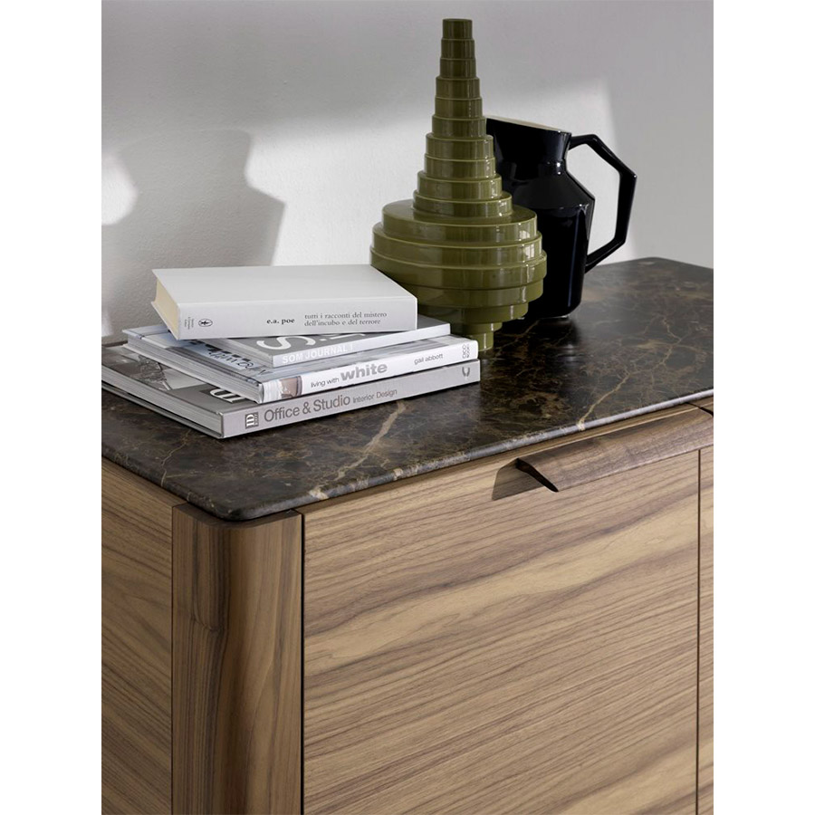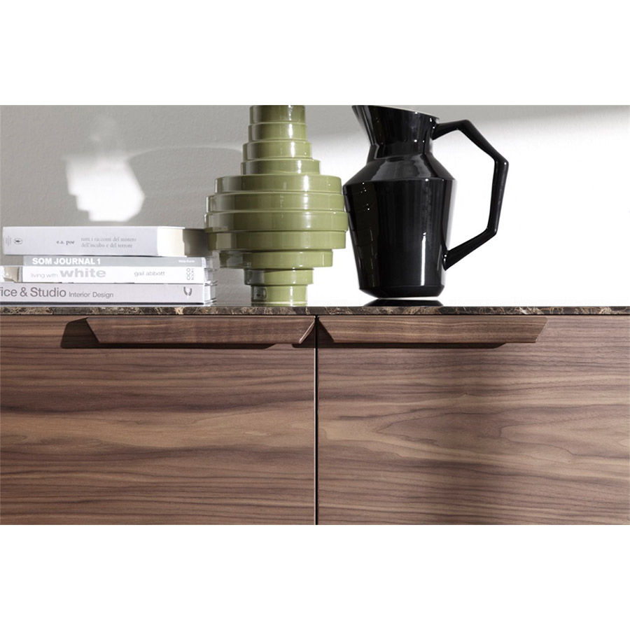 C. BallabioShowcase in Canaletto walnut with two doors in wood or glass and top in wood or marble. Interior glass shelves. The dimensions of Atlante 1 are 113x53x151H