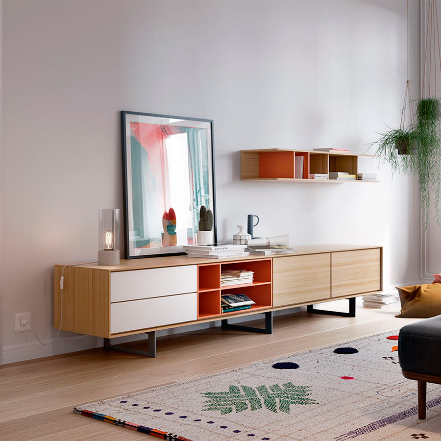 The Aura collection has been conceived mainly for sideboards and furniture for living rooms and dining rooms. Its design is inspired by the past and under the influence of the design culture of the Nordic countries, which know how to combine tradition and naturalness with large doses of modernity. The result is a collection full of memories that give off a modern aura. The metal and wood legs designed especially for the collection reinforce that retro and timeless look. The finish is very important: walnut and oak wood with a hyper-natural finish and a lacquered look combine perfectly with the wood.