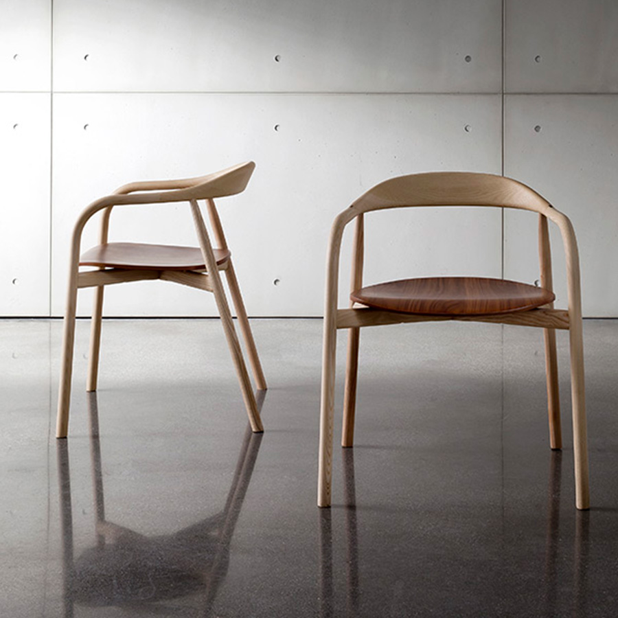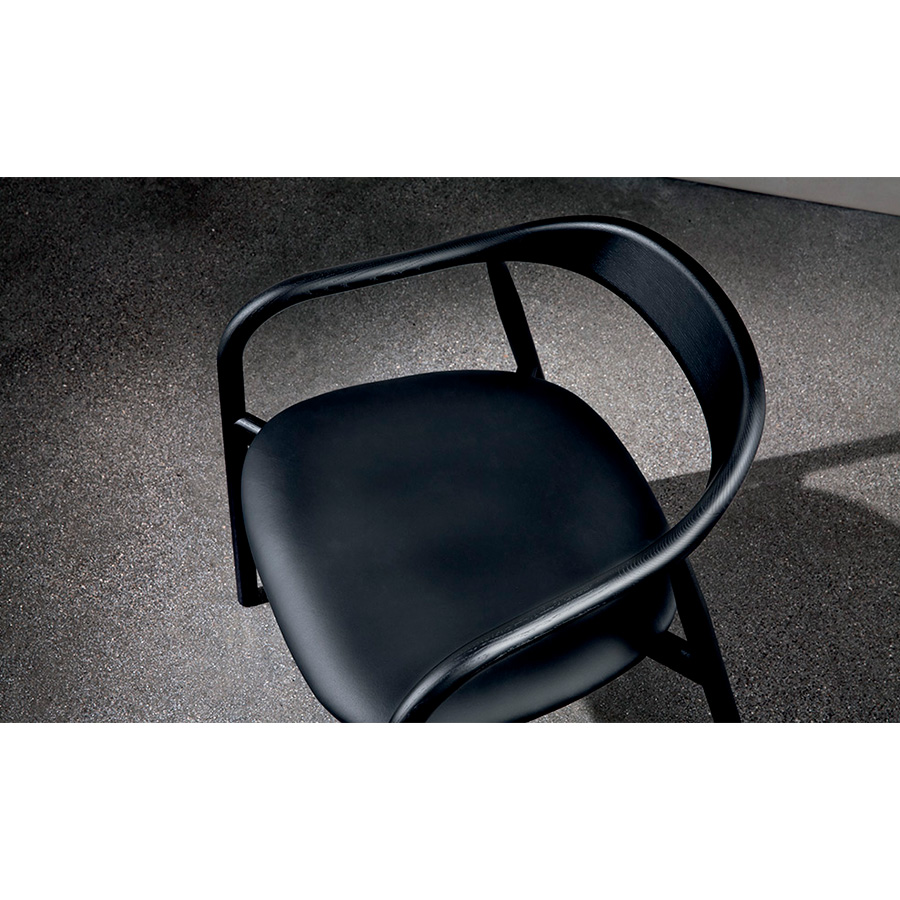 Ichiro IwasakiThe Autumn chair is characterized by a sophisticated balance between structure and seat, representing Italian craftsmanship’s typical expression. The structure is made of curved ash wood, available in a natural tone, Canaletto walnut, or black. The seat can be made of wood or upholstered.