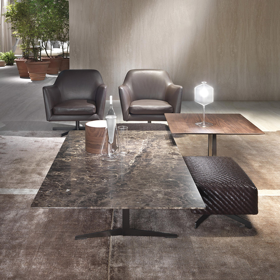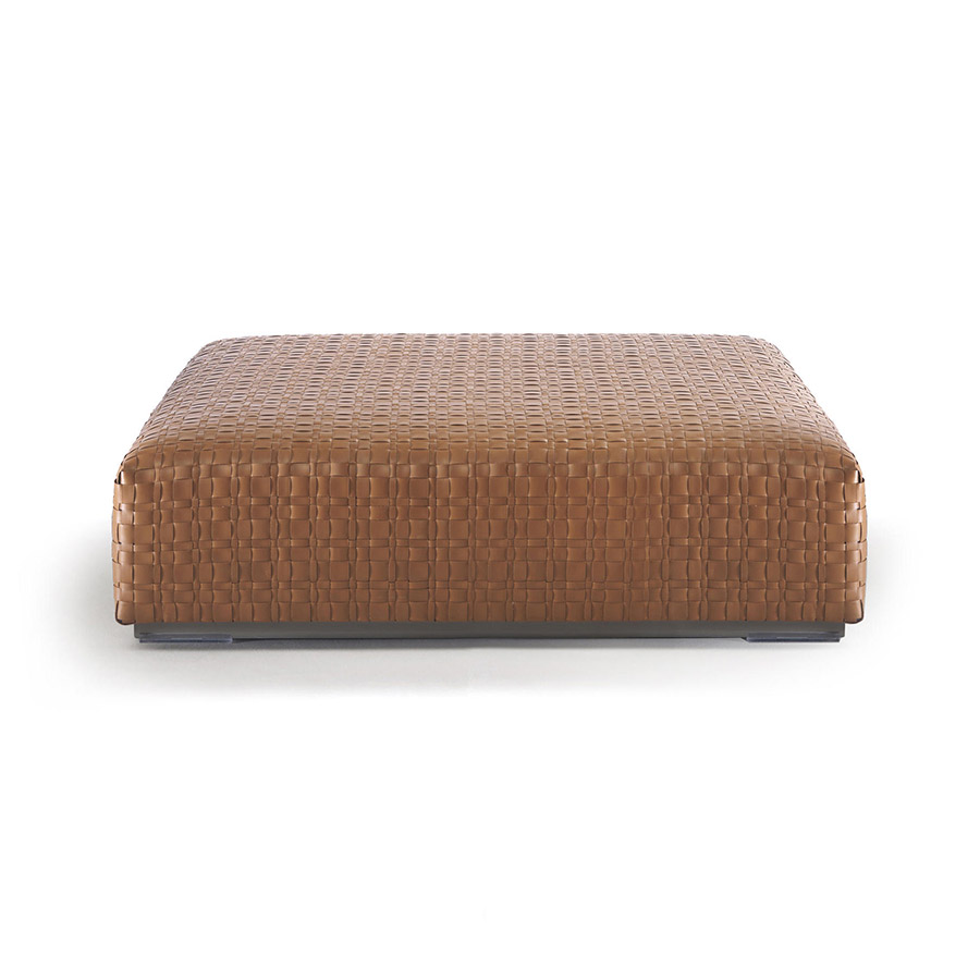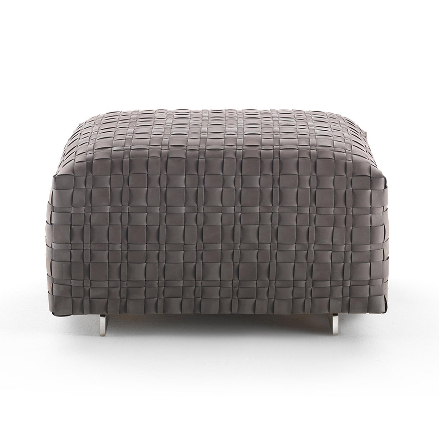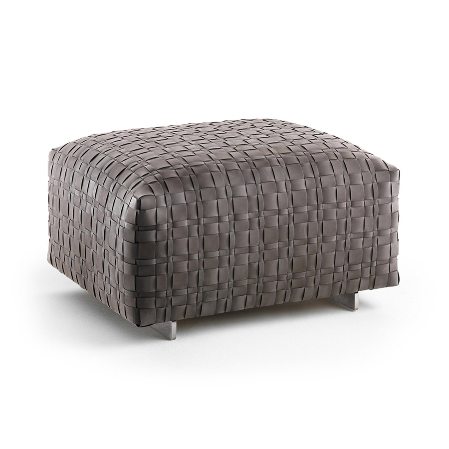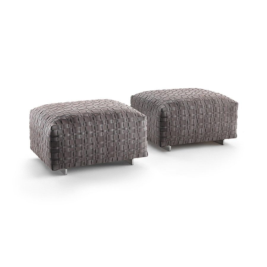 Equipo FlexformAvailable in two sizes, the Bangkok pouf is a versatile accessory that, thanks to its refined construction and practicality, is ideal in any room of the home, from the living room to the bedroom. A parallelepiped with rounded corners and solid wood and metal structure, padded with polyurethane and Dacron and upholstered in matching fabric. The Bangkok pouf can be upholstered with all the fabrics and leathers from the extensive Flexform collection. Still, it is in the refined woven or suede leather version that it acquires an unmistakable personality.
