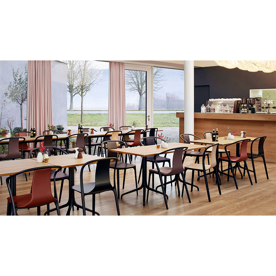 Belleville is the name of a lively neighborhood in Paris where the studio of designers Ronan and Erwan Bouroullec is located. The visual references of the Belleville Chair can be found in the classic furniture of French restaurants and the cheerful atmosphere of this corner of Paris. Even in a contemporary context, the familiar shape of the chair might be noticed for granted at first. Still, it also brings a sense of mystery and bewilderment as the chair’s material, structure, and manufacture can only be seen when looking at it with arrest.