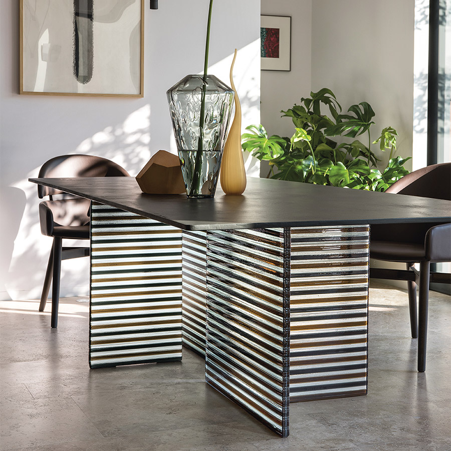 Founded by Vittorio Livi in 1973, FIAM designs, develops, and produces furniture items made of curved glass, creating them through a blend of craftsmanship and industrial processes, effectively blending tradition and innovation, handcrafting and design. Vittorio Livi developed a profound appreciation for glass from a very young age. Glass, simultaneously solid and fragile, natural and artificial, ancient and industrial, embodies a mass of seeming contradictions, and Livi cherished it for precisely that reason, as well as for its practical qualities. Glass is environmentally friendly and hygienic: though it may appear simple due to its transparency, both its chemistry and physics are remarkably complex.