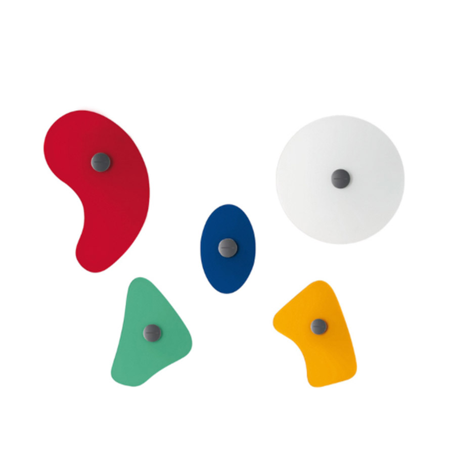 Ferruccio LavianiThe first lamp designed by Ferruccio Laviani with a sculpture in mind is declined in a wall lamp: the five Orbital diffusers were designed in the five different versions of Bit, a modular wall lamp. Each screen-printed industrial glass plate has an irregular shape to obtain an effect of great graphic impact, both to be used individually and in multiform compositions. The white version effectively uses tone-on-tone to enhance the profile of shapes that seem to be cut out of the wall. The colored diffusers, on the other hand, evoke a surreal drawing when the lamps are off and the light plays on the mosaic-like stained glass windows when they are on. The attention to detail extends to the surface treatment of the diffusers, satin-finished on the outside to give the color a pasty texture and highlight the shapes, and shiny on the inside to reflect the light.