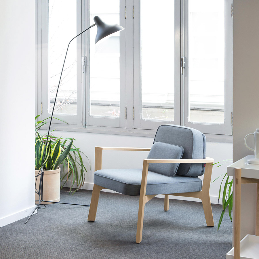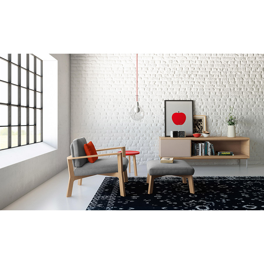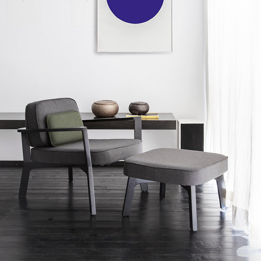 Borja GarcíaCon líneas sencillas y refinadas, este conjunto de butaca y pouf aportan calidez a espacios comunes.