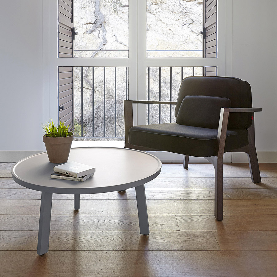 Breda Mesas Colección de mesas de pequeño formato, con un marcado estilo nórdico, y acabados en madera maciza y superficies texturizadas. La tapa se mecaniza para conseguir una superficie ligeramente cóncava en su perímetro.