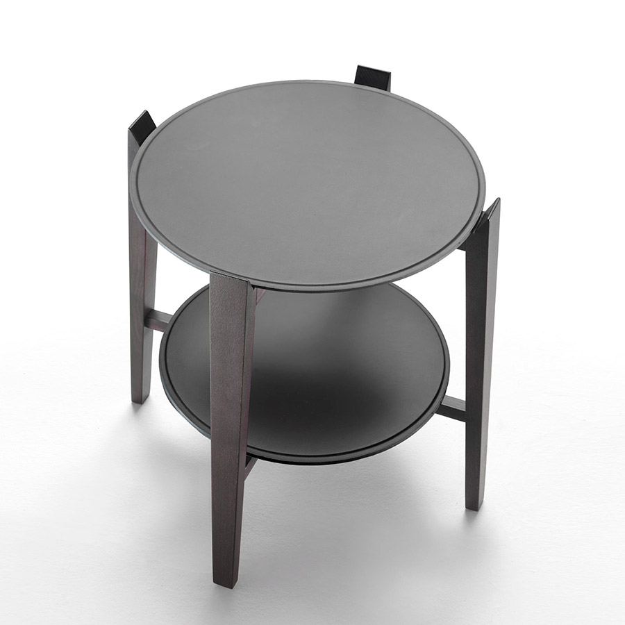 FlexformAs elegant as it is functional, Cabaré is a coffee table that can be used with all the Flexform collection seats. Round in shape, it has a refined structure in solid wood –American walnut or ash in various finishes– and two superimposed tops in metal covered in leather: the lower one can be used to place books or magazines. The upper level is crowned by a practical pull-out tray, from which the Cabaré coffee table takes its name. The tray is made of metal in the finishes satin, chrome, burnished, black chrome, and champagne, and it makes Cabaré a real joker in the living room.
