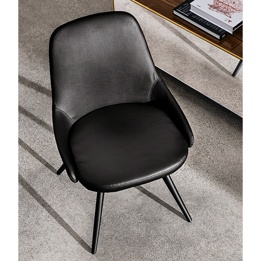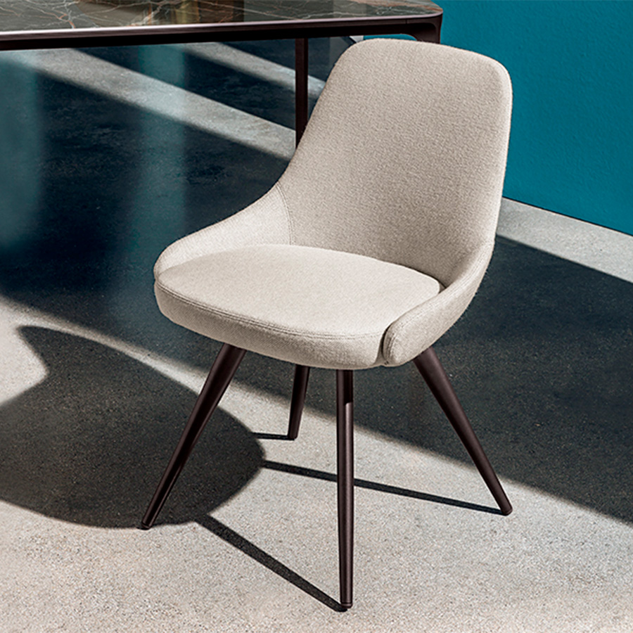 Studio SovetThe Cadira chair has an enveloping and comfortable seat that combines elegance and simplicity with any table. The Cadira chair has different upholsteries: leather, imitation leather, fabric, or velvet. Metal base in different finishes. Ideal for home or work environments. Available in version with armrests.