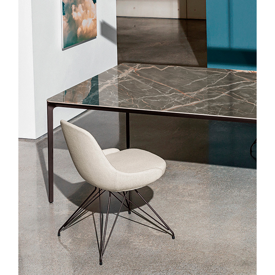 Studio SovetThe Cadira chair has a seat with an enveloping and comfortable shape that combines elegance and comfort in any style of table. Available in different upholsteries: leather, imitation leather, fabric or velvet. It is an ideal chair for both home and work environments.