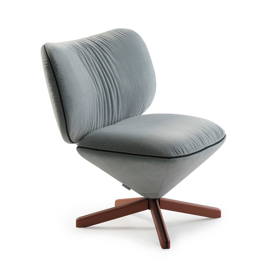 The structure is made of solid wood covered with foam and fiber with velour. The seat and back frames are prepared with NEA straps. The seat cushion is made with HR Ultracel foam with differentiated density. The interior of the back cushions is made of siliconized polyester microfiber. The covers are 100% cotton. The metal legs are made of satin stainless steel tubes. The wooden legs are beech stained in wenge. All versions can be upholstered in fabric, leather, or synthetic leather. The compositions in the material have completely removable covers, while in leather or synthetic leather, only the pillows.
