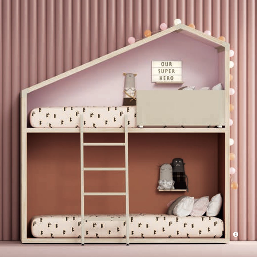 What child hasn’t dreamed of sleeping in a cottage? Cottage is their cabin, their refuge… The perfect place to let their imagination soar. Under this concept, Cottage was designed, and over time, we have observed that it is not only the center of their world but also influences the rest of the furniture, objects, and colors in their room, reflecting their magical universe.
