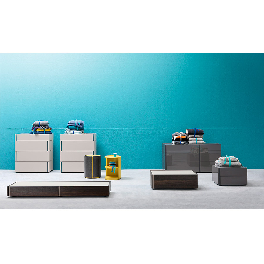 Da-Do is a daytime program made up of TV stands, sideboards and high sideboards that can be placed on the floor with metal legs or feet or hung from the wall. Da-Do allows extensive customization thanks to combining two finishes, one for the exterior and the other for the countertop and the groove that serves as a grip for the opening. An open compartment with a contrast finish is also available.