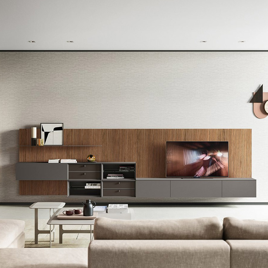 Day collection is a versatile system for all spaces in the home that offers maximum compositional freedom. Containers, shelves, wall panels, stools and drawer units create standard modules or new compositions that play with volumes and voids. The multiple finishes also adapt to various tastes and needs.