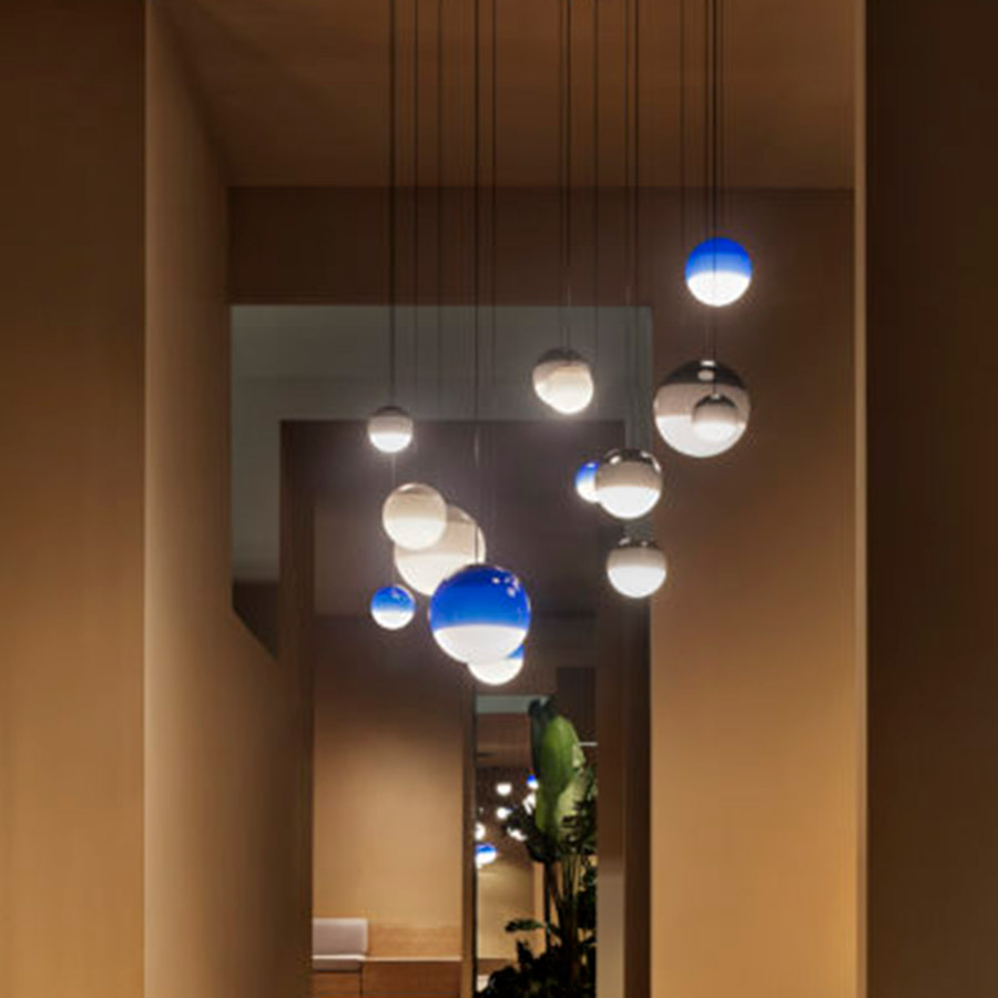 The new suspension Dipping Light removes everything and keeps the essentials; the color becomes the absolute protagonist. That’s why the visual effect is fascinating when creating a composition with several. Moreover, this new modality is presented in three different sizes: 12.5, 20, and 30 centimeters in diameter.