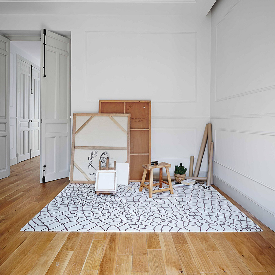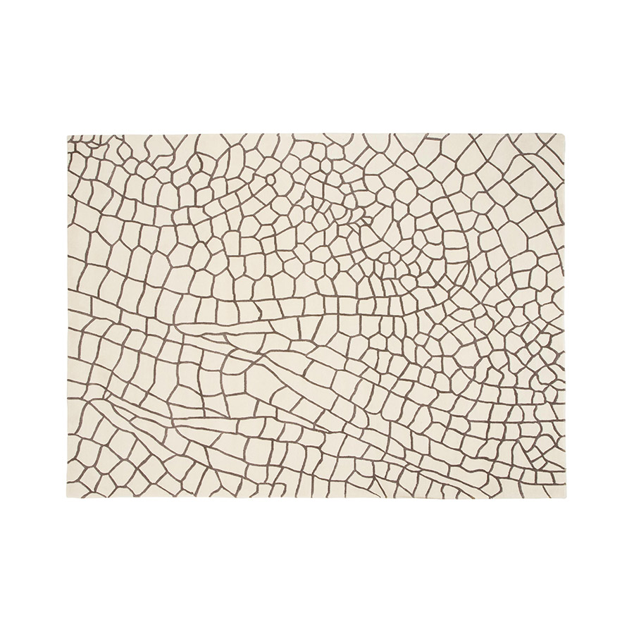 This is the Topo model of Dragonfly rug, a design made knot by knot entirely by hand. This is how its attractive and changing drawing is achieved, inspired by the latticework of the wings of a dragonfly, conceived by the famous Japanese studio Nendo. It is a rug made using 100% virgin wool from New Zealand in taupe and ecru, so it is a very soft piece to the touch and underfoot. It is available in two sizes and in another version with inverted tones.