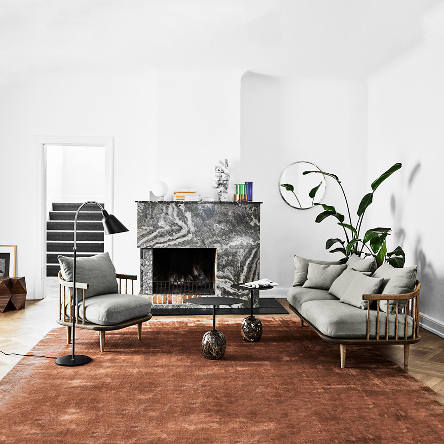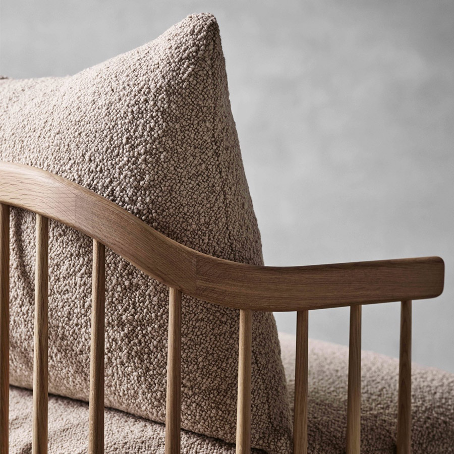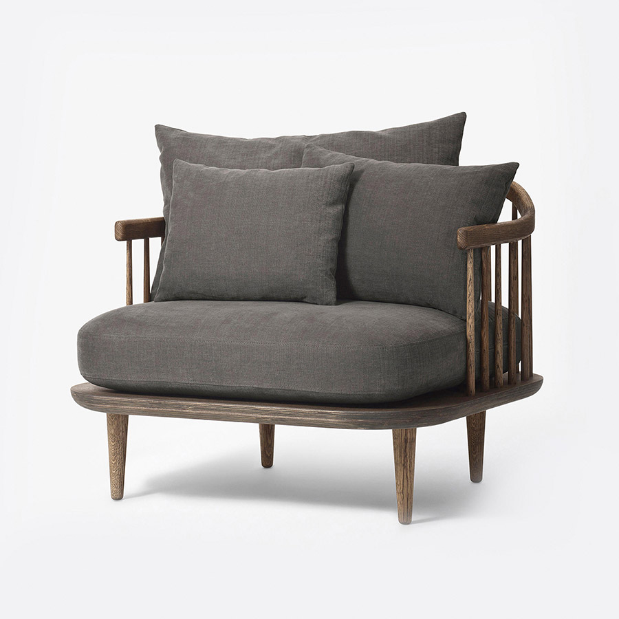 Unlike many armchairs that are part of Scandinavian design, FLY does not impose any particular position. The wide seat is designed for comfort, with loose cushions on the backrest that can be placed to suit each person. But FLY does not let go of aesthetics or tradition in other aspects. The armchair’s frame, with a slatted back, is made of solid, waxed or stained oak. Thanks to this material and its treatment, the armchair ages gracefully, and will become more beautiful over time. Also available in sofa and chaise-lounge version.