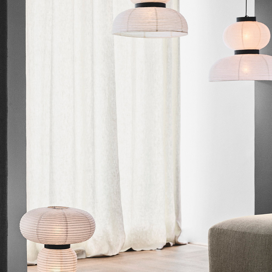 Formakami is an ultralight pendant lamp, designed by Jaime Hayon, and inspired by ancient Asian lanterns, although reinvented with a modern aesthetic. Its origin dates back centuries, when paper lanterns became popular in Asia, using different colors, shapes and sizes with different meanings. They were often used for celebration or just decoration to reflect hope and prosperity. Fusing craftsmanship and ancient materials such as rice paper, Formakami becomes an ideal lamp for modern spaces.