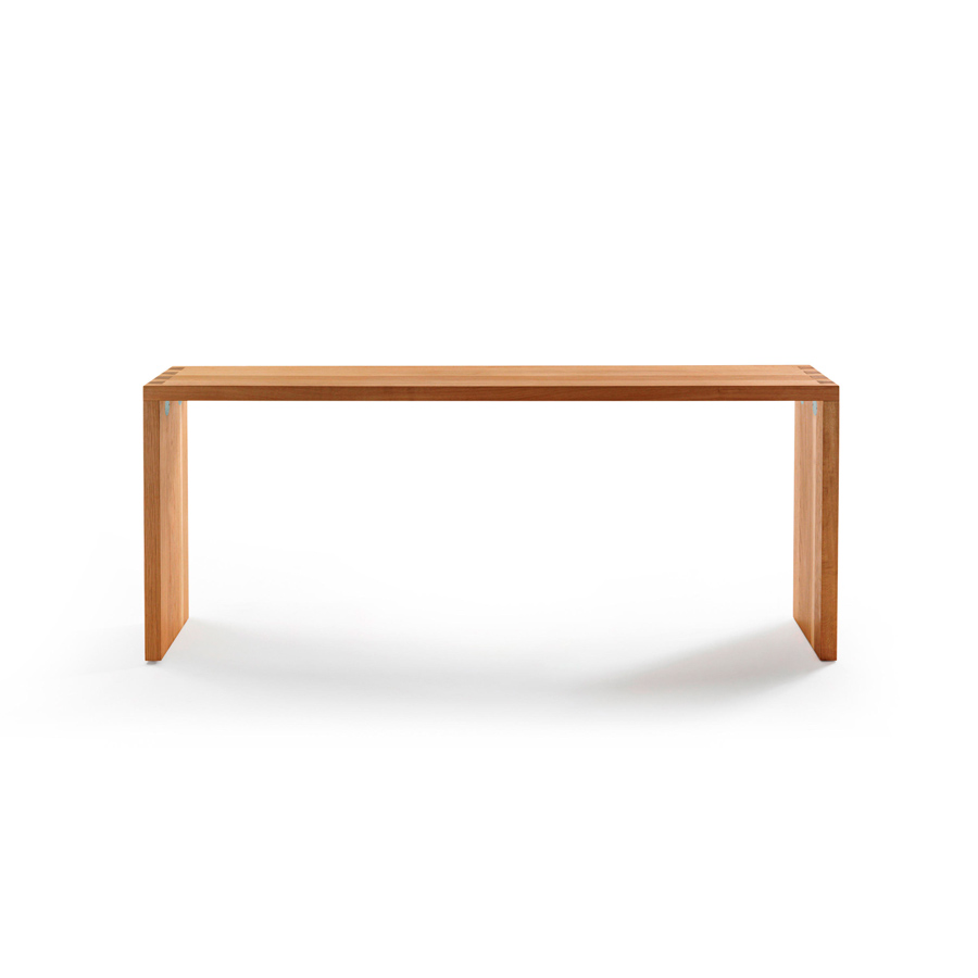 Console entirely made of wood with glued slats with straight sides, characterized by dovetail joints between top and base. Finish: based on natural plant-based oil/wax with pine extracts.