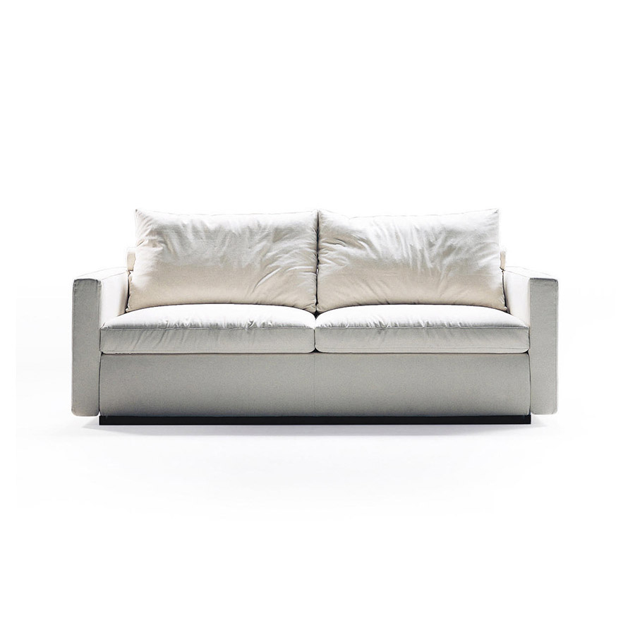 FlexformGary is a double sofa-bed that retains all the dignity of a well-resolved sofa in its proportions and elegant lines when it is closed, becoming a comfortable and authentic bed when it is open. The structure is made of wood with polyurethane foam padding and a protective fabric cover. The bed is very easy to extract thanks to a patented mechanical movement.