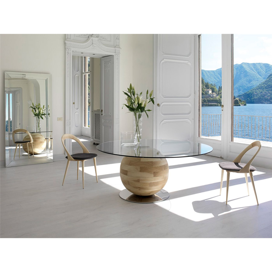 E. MissagliaDining table with base in solid canaletta walnut or ash mounted on a metal disk and top in tempered glass (thickness mm. 12).