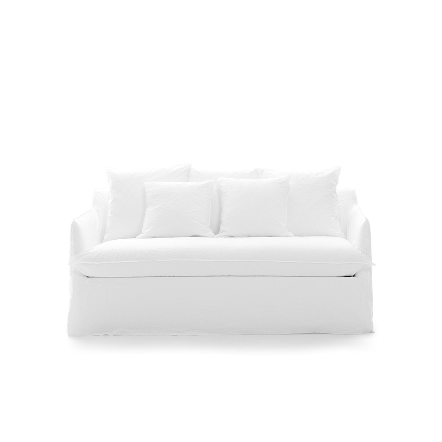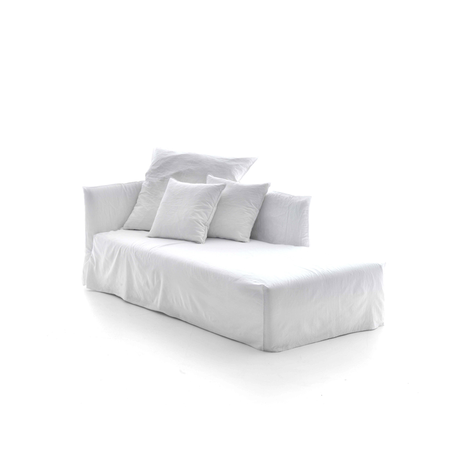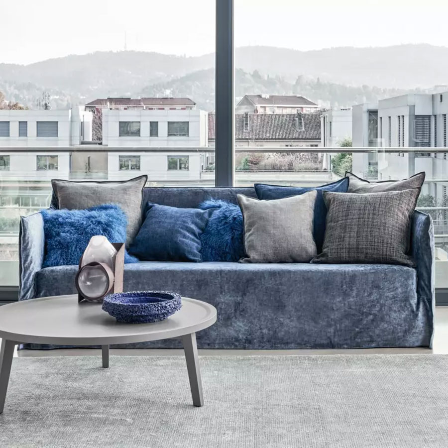 Paola NavoneA family of small or XL sofas, with or without high-height backrests, modular elements in various shapes and sizes, give rise to all the possible compositions of Ghost, a sofa that develops around a light frame with essential volumes. Made with a minimalist and subtle structure, covered in expanded polyurethane, Ghost contains soft, loose cushions in a mix of feathers. The main feature of the Ghost sofas is the removable cover, a large cover whose profile is highlighted by visible seams, which allows products to be undressed and redressed in an instant. It is a textile design that easily changes the look, allowing you to go from a formal look to a casual one with ease and speed.