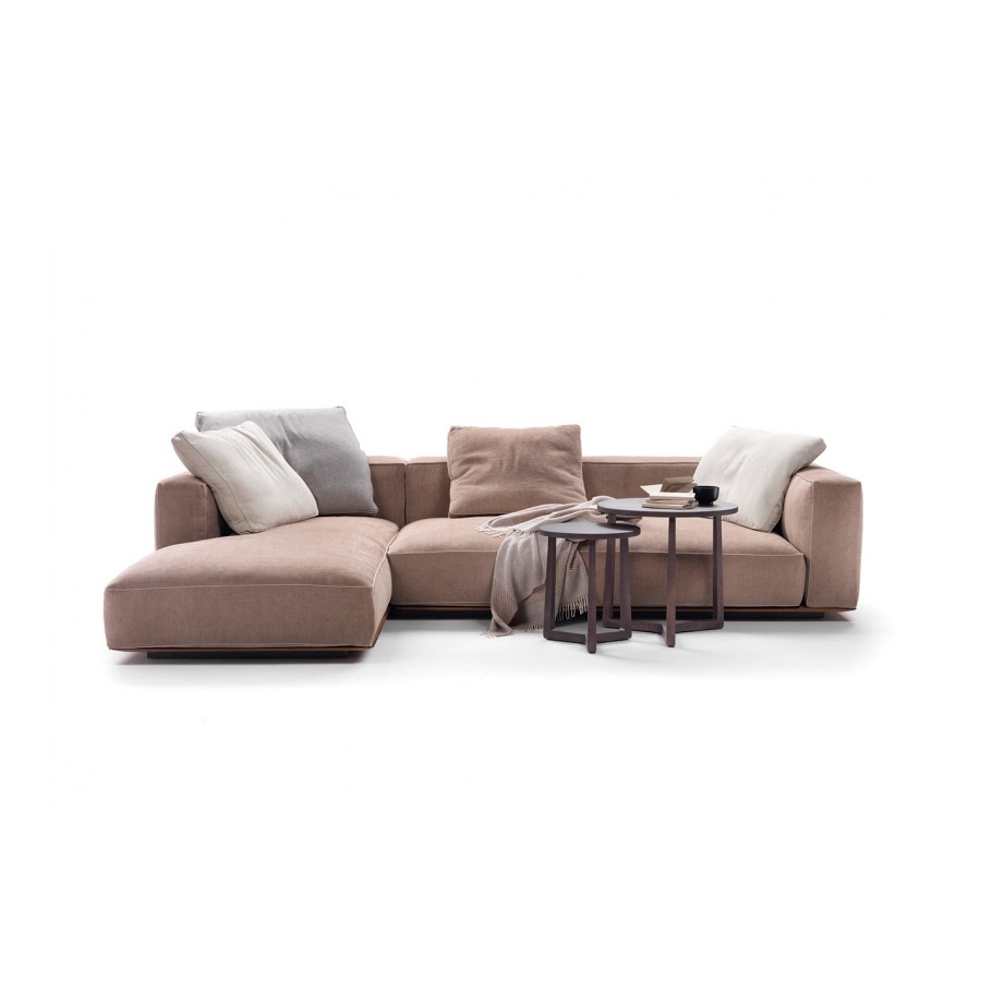 Antonio CitterioThe Grandemare sofa has been designed under the sign of discretion, but it is rich in design solutions, even hidden, that reveal its great value. It presents an aggregation of smooth geometric volumes and is completely devoid of edges, resting on a wooden platform covered in leather. The fabrication of the upholstery of the seats, armrests, and backrests is enhanced by a grosgrain profile that can be made tone-on-tone or in contrast. A metal perimeter frame painted in an oven with epoxy powder, set back from the leather-covered top, gives the Grandemare sofa a floating appearance.