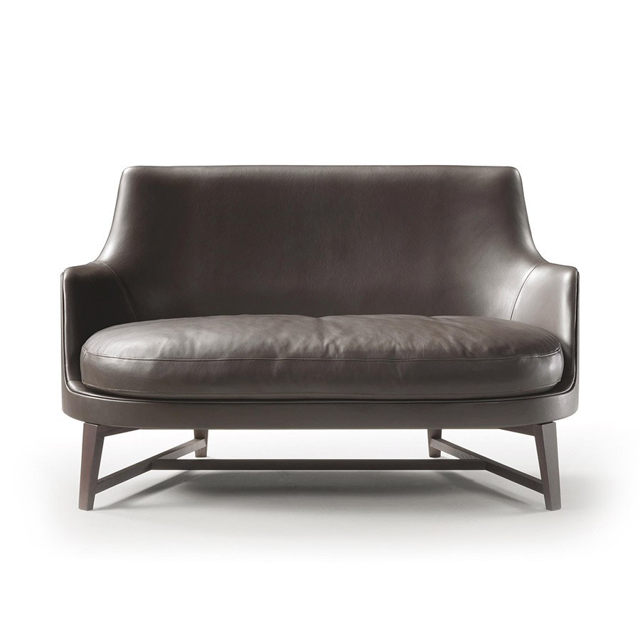 Antonio CitterioAn effective synthesis of elegance and quality, the Guscio sofa presents enveloping lines and impeccable tailoring, characteristics that accentuate its natural inclination to decorate residential and hotel areas, such as lounges, executive offices, and boutiques, under the banner of warm intimacy. The structure consists of a shell in structural polyurethane foam, while the seat cushion is in a feather with an insert in non-deformable material. The refined aesthetic language that characterizes the Guscio sofa is also expressed in the design of the base, which is proposed in solid wood variants – American walnut or ash in various shades – or metal in multiple finishes. The Guscio sofa is available in a width of 128 cm, with a wooden or metal base, and in a width of 220 cm, available only in the version with a metal base.