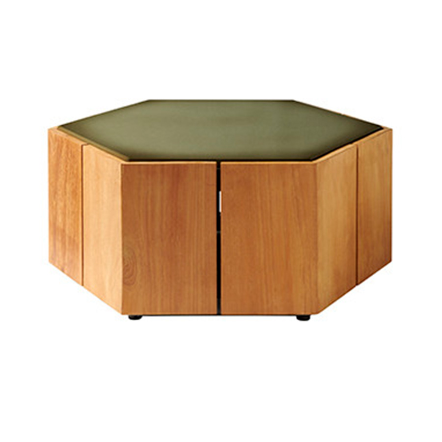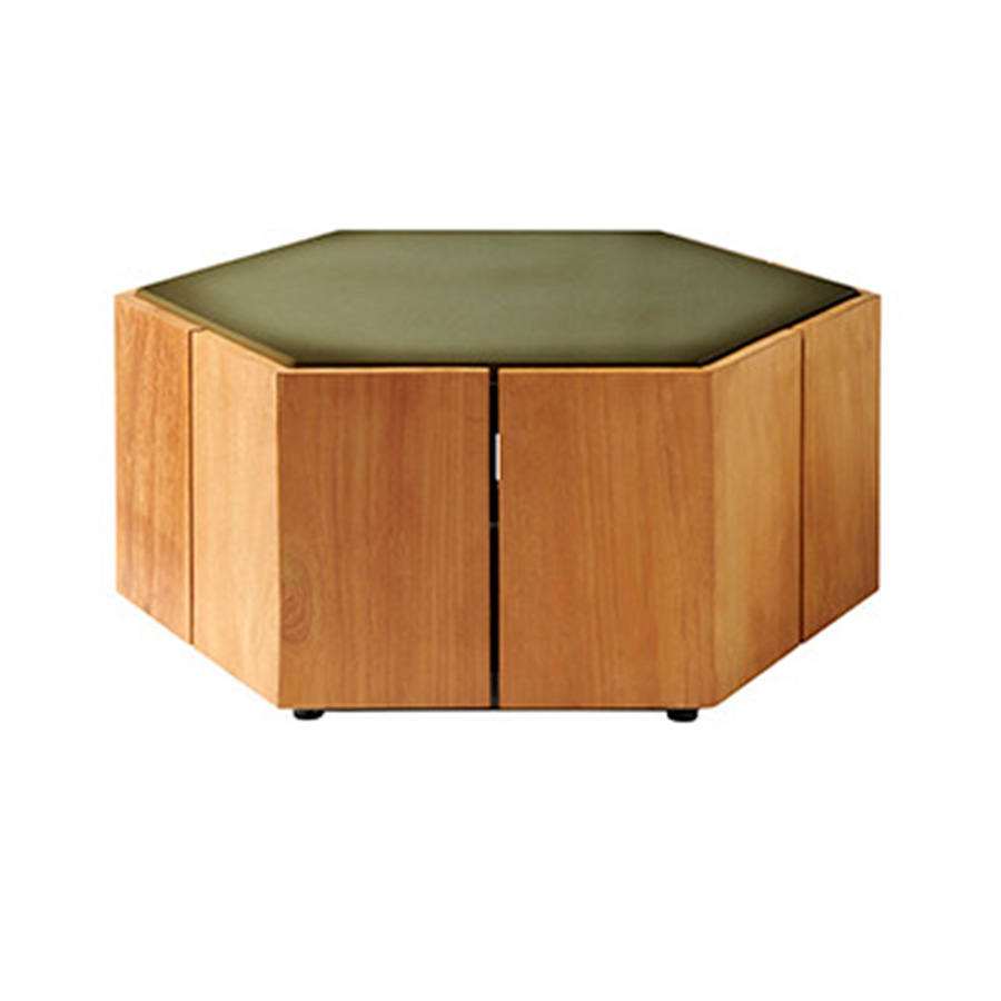 Marc Merckx Pieter MaesThat nature is an unlimited source of inspiration for new designs that Marc Merckx proves with his Hexagon tables. First, the designer was inspired by the Giant’s Causeway, a rock formation in Northern Ireland on the UNESCO World Heritage list. The teak base of the table refers to the hexagonal basalt pillars of the wonder of the world. In addition, Merckx bets on increased proportions: hence the honeycomb with its perfect if was its second source of inspiration.