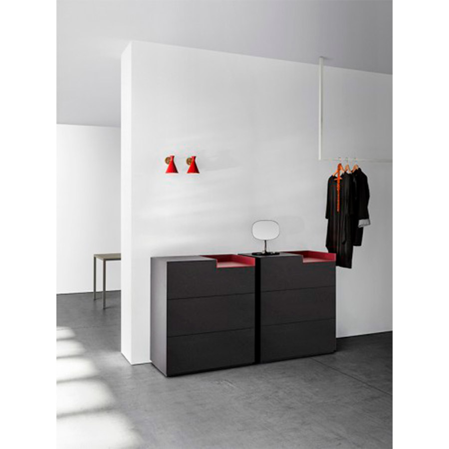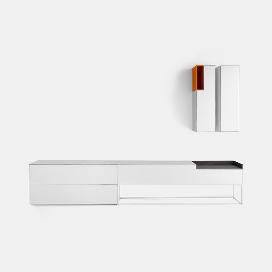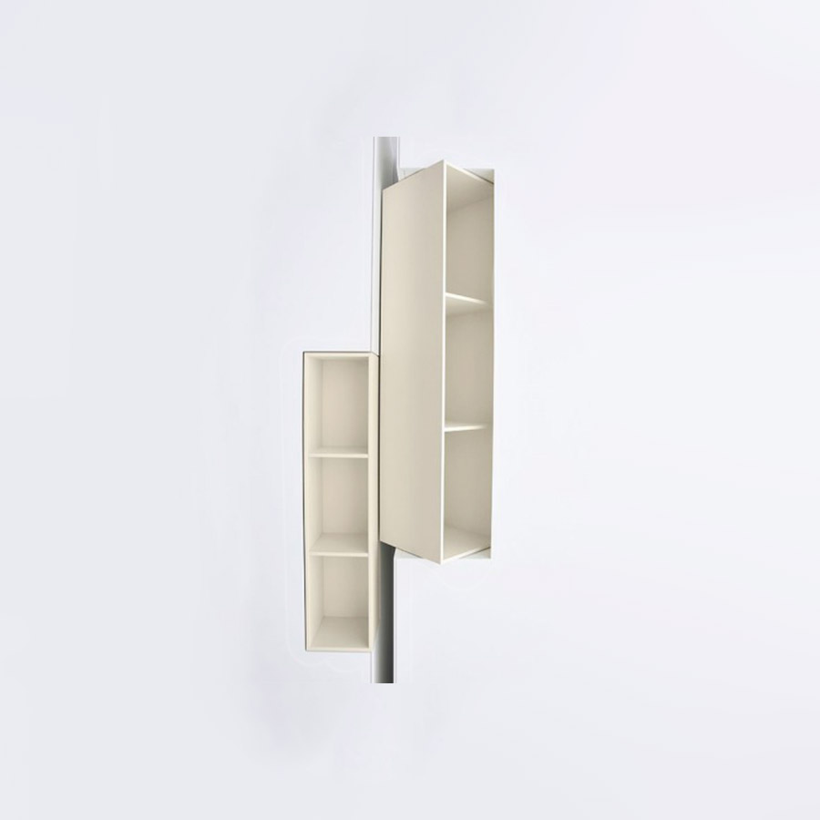 A storage system that expresses 3D, aesthetic and functional innovation. Your identity sign? Maximum flexibility, since it is made up of column-shaped elements, as well as basic and hanging elements that can be superimposed as you like. The rotating modules, the drawers and the folding drawers can be composed by juxtaposition or can be fixed to the wall. Finishes and colors can also be customized. Colors can also be changed after purchase. The emotion of Neuland Industriedesign expresses great creative freedom that arouses emotions, for dynamic, lively and original spaces.