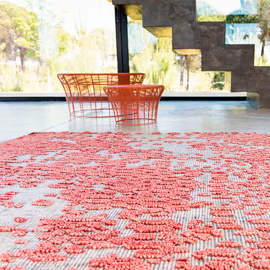 With a design that seems random and spontaneous, our Japan rug is a model that is made knot manually by knot with 100% virgin wool. This technique allows precisely to obtain that sensation of casual and fortuitous design that this piece transmits, reminiscent of when nature sprouts wild and heterogeneous. Its textured buds contain multiple analogies: from a shower of petals to fields of cherry trees in bloom or a colony of sea corals. Its surface, of an attractive coral color, presents some subtle variations of hue. This is because it is made with threads dyed with the tie-dye technique, a system in which knots are used when dyeing a textile, and applied to the woolen threads used in its making. This dyeing method means the strands can present various shades, colors, or gradients. Japan is a model designed by GAN's internal team, available in two sizes.