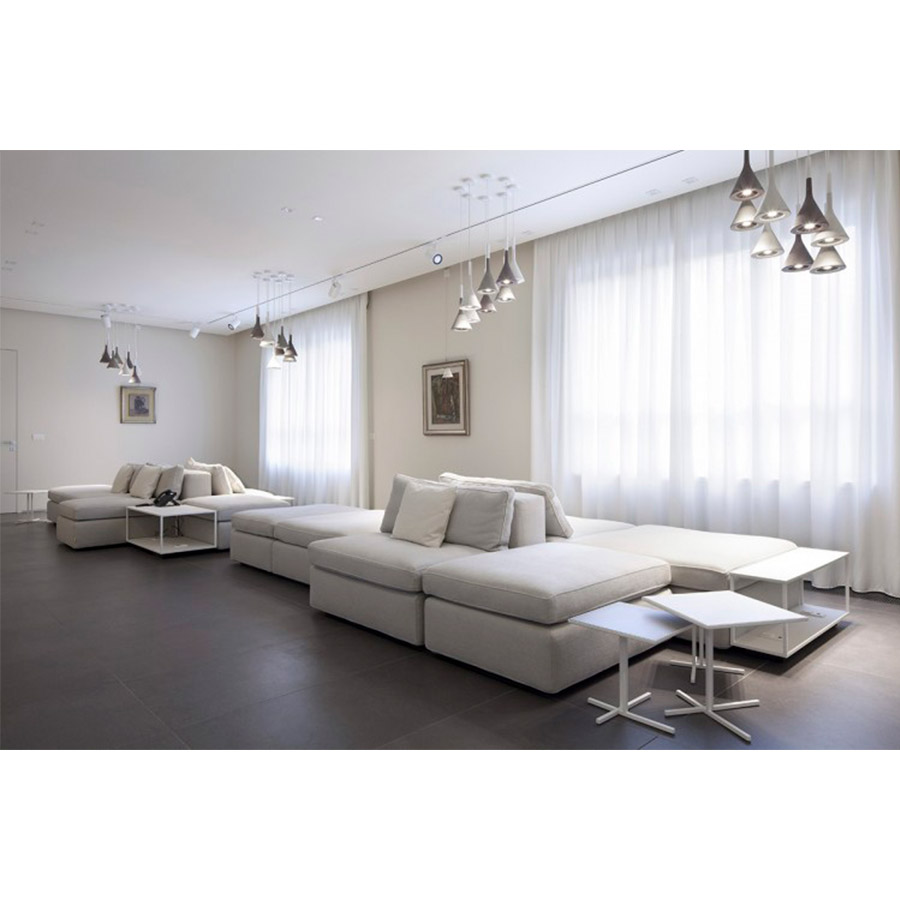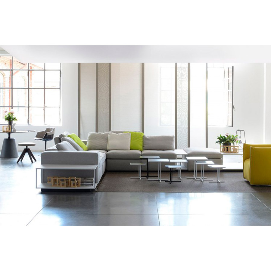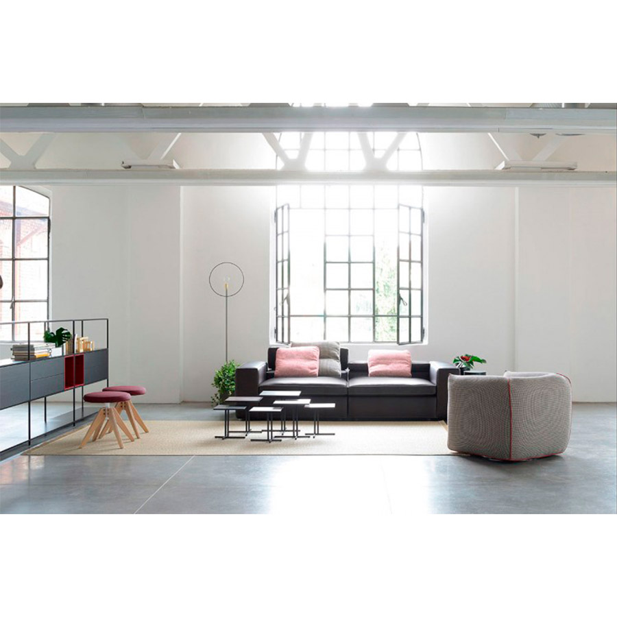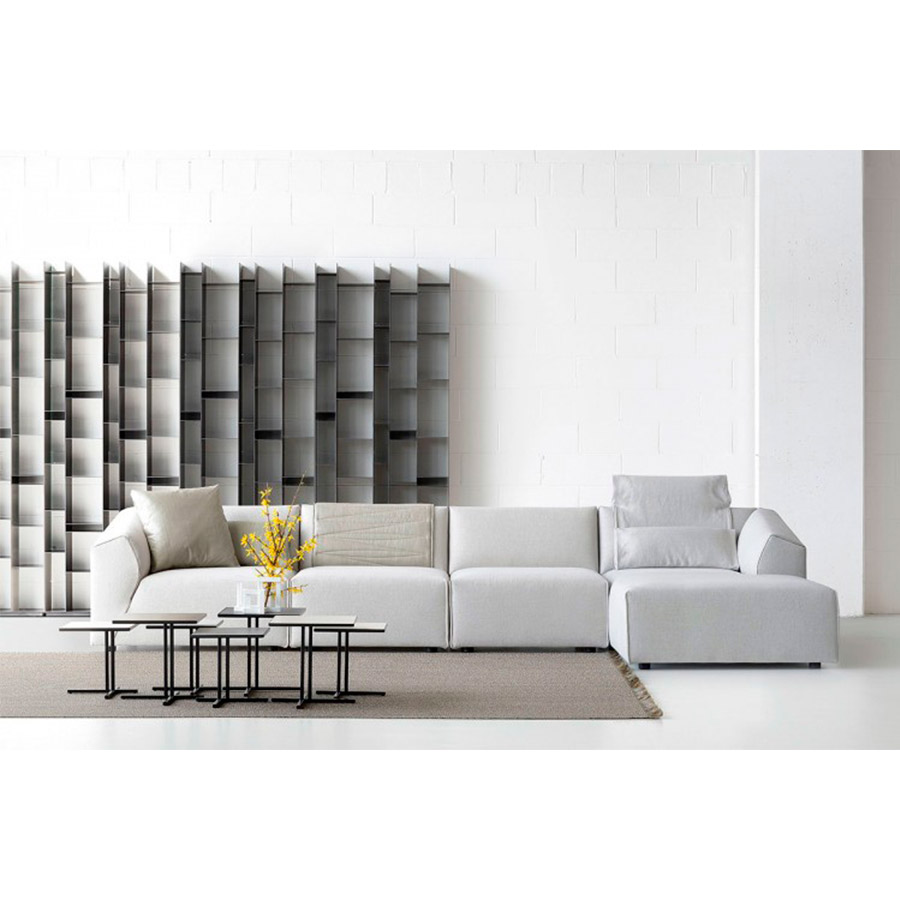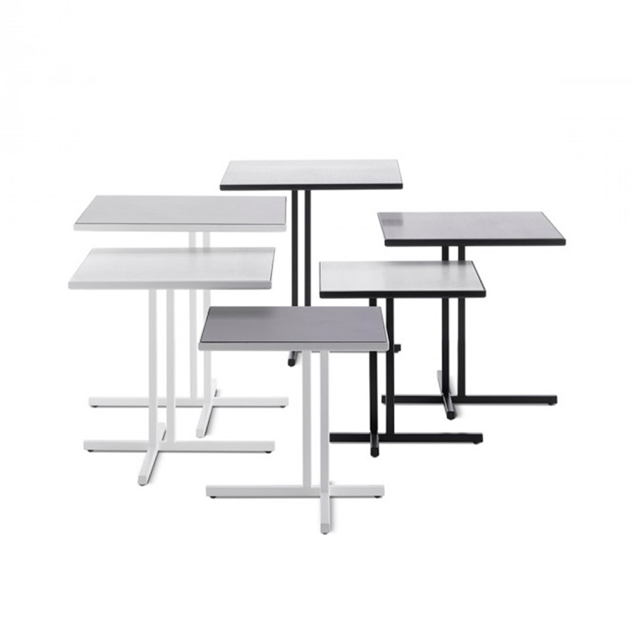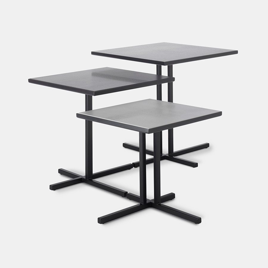 A pleasant game of interconnected elements, which creates an ironic collection. With a simple design, K coffee tables can be included in any context and environment. Different configurations and compositions based on customer creativity can be determined as one piece or grouped. Matte or graphite white painted steel structure. Table boards in Grès porcelain in the versions with satin or satin finish: white, medium, and anthracite gray, as well as the special version Corten.