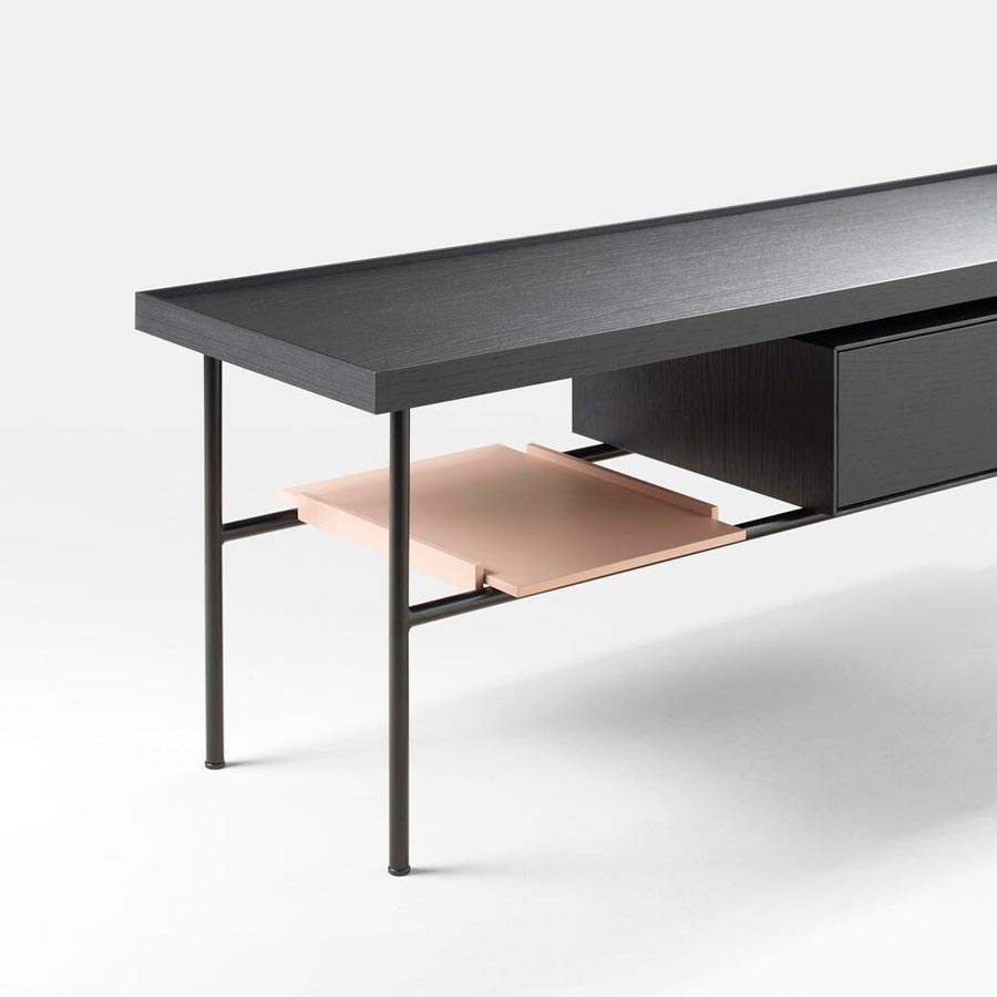 All the pieces that make up the Kutxa collection have a sculptural touch but without direct references to artists or their works. The idea is for these furniture pieces to contribute to creating calmer and more cared-for spaces, rather than optimizing storage space. Kutxa is a collection of furniture with different shapes where each piece has its own personality and serves a function within a graphic logic.