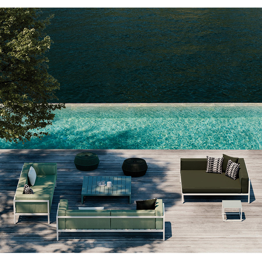 Equipo KettalOutdoor sofa by the firm Kettal with an aluminum structure in different colors and upholstered cushions.