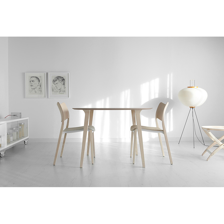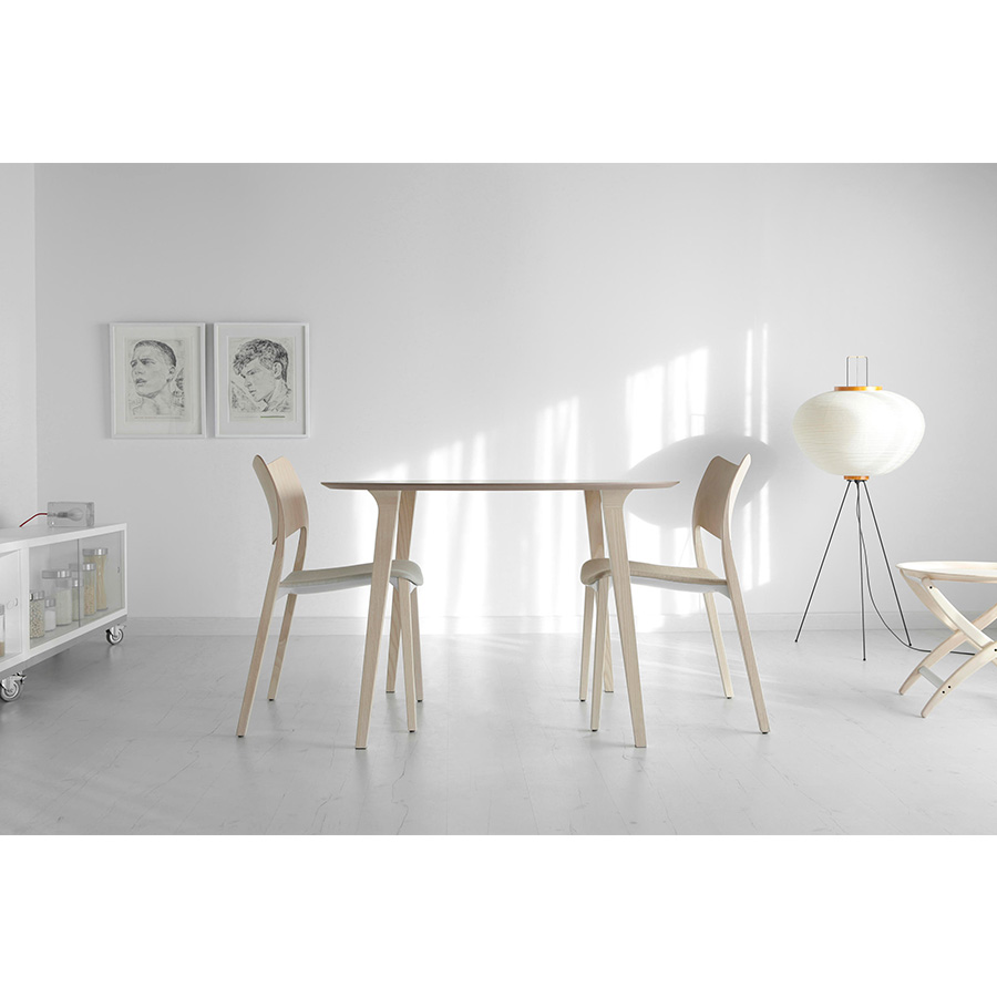 The Lau table is a table entirely made of ash wood. In the Lau table, the formal protagonism is taken by the delivery between the legs and the top. Inspired by living shapes, the leg leans and widens in a curve that meets the top. With that single gesture, the design provides greater strength to the union and gives personality to the piece of furniture. Lau table has a contained and stylized design created with the idea of lasting over time.