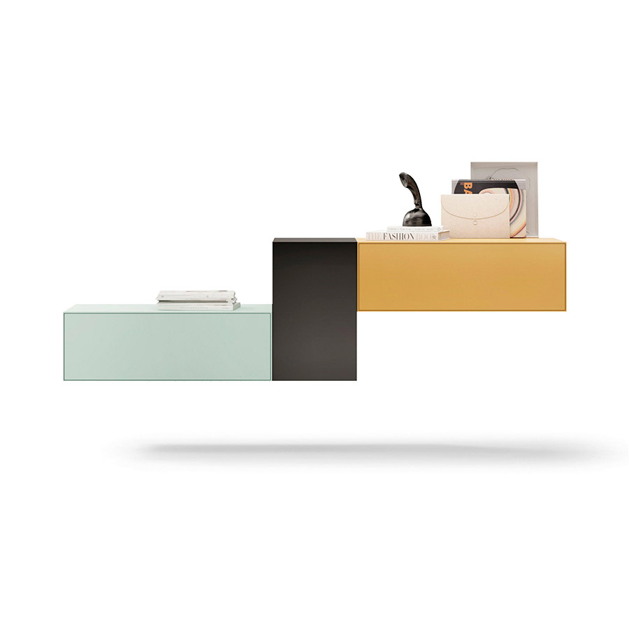 Ibon ArrizabalagaThe Lauki collection comprises multiple boxes that can be placed on the floor, stacked between them, and hung on the wall. In addition, they are offered in a large number of sizes, finishes, and functions (drawers, doors, open modules…). This allows you to create an infinite number of valid configurations for any room. For example, a single module can be used as a bedside table or a chest of drawers for an office. We can configure a solution for the hall or any other corner of the house with a few modules. And with several modules, we can configure a cabinet for the television, a device, and even a chest of drawers for the office.