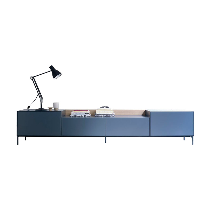 Ibon ArrizabalagaTV cabinet from the Lauki collection designed by Ibon Arrizabalaga. Timeless style, clean lines, retro aesthetics thanks to the combination of Sapphire Blue colors with oak. Large storage capacity. Metallic feet.