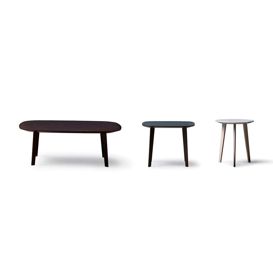 Life is a coffee table with a wooden structure available in three variants: round with three legs and rectangular with four legs in two sizes.