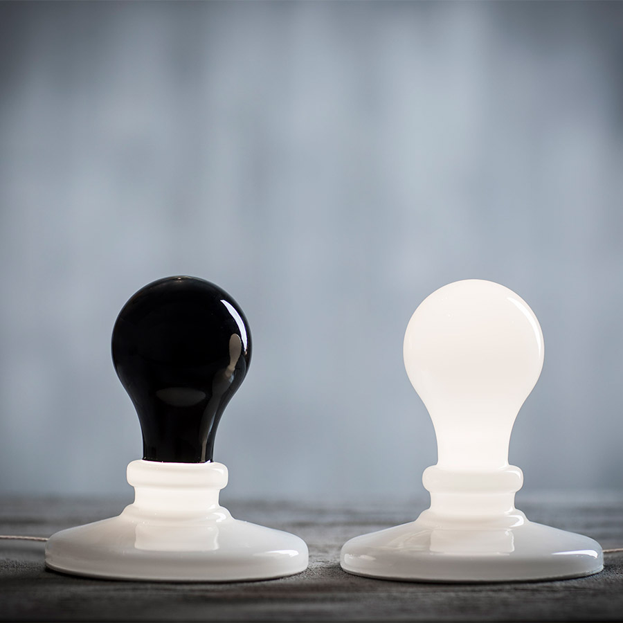 Made of 5 pieces, the complete series is dedicated to collectors and enthusiasts and sold in limited and numbered editions. Foscarini also proposes a spin-off of the collection dedicated to a wider audience: White Light and Black Light can be purchased separately. White Light is the matrix, the still intact base icon of an object that has become the archetype of lighting. Black Light is a pure inversion of functions and parts: a lamp holder that emits light, while the bulb remains black and “dark”. An accessible temptation for those passionate about the conceptual approach and critical reflection of James Wines.