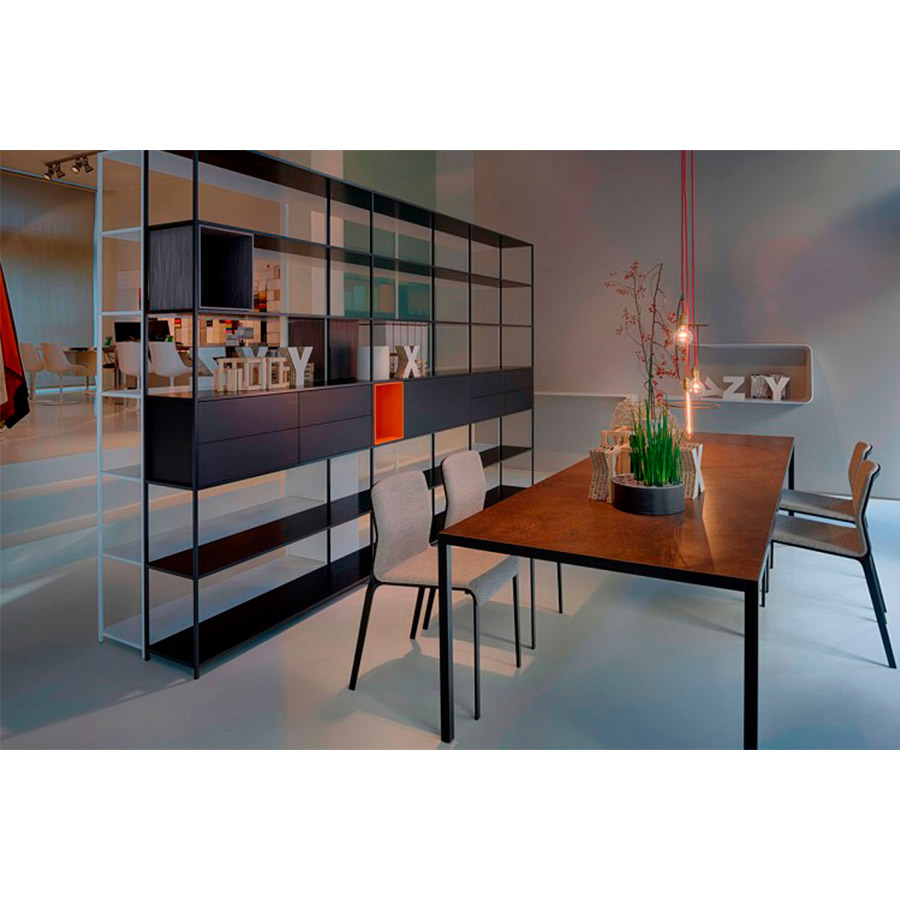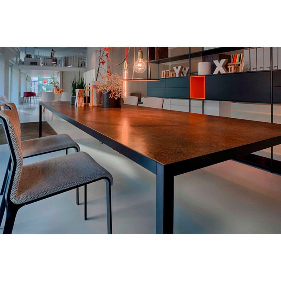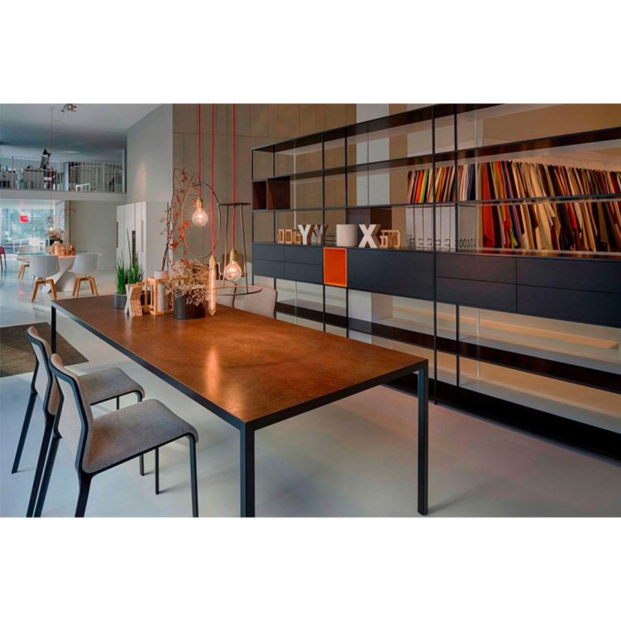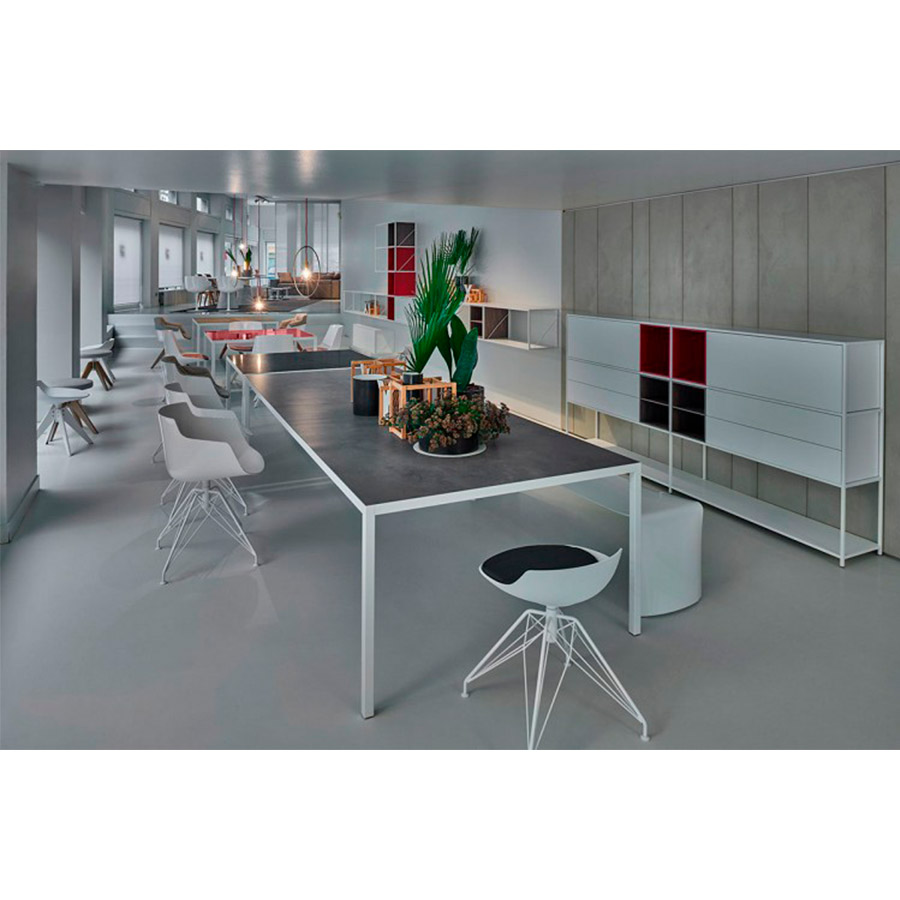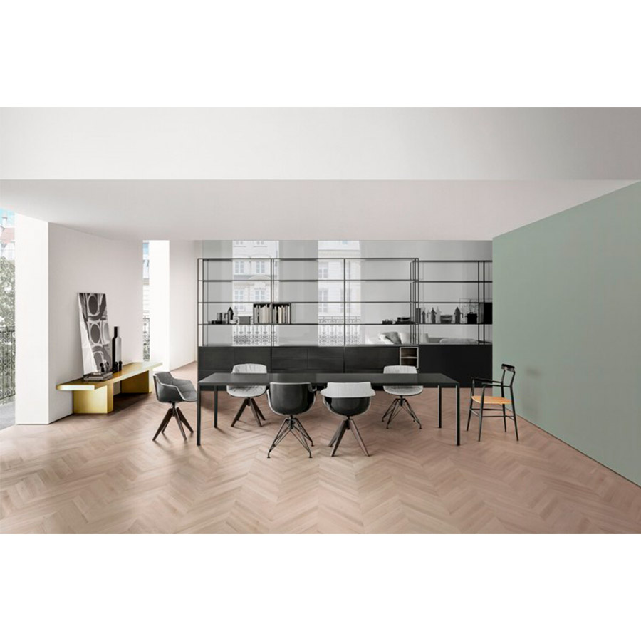 Bruno FattoriniLim 3.0, a change of image of the iconic family of Lim, is renewed and becomes light and thin table with a more updated and modern identity. The structure contained in the sections can receive different materials to offer an alternative option to monochromatism and the structure of a single material. The tapas are integrated into the frame and are available in lacquered tempered glass, ceramics in a brilliant variant or with satin coating, and Fenix, an innovative high-pressure stratified laminate. Extracted aluminum structure, in natural anodized version or mate lacquer in white and graphite gray. Heights 30 cm.