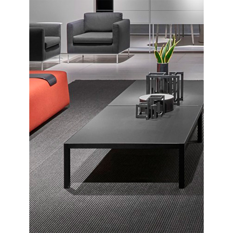 Fattorini + Rizzini + PartnersLim 3.0, a makeover of the iconic LIM family, is renewed and becomes a light and slim table with a more up-to-date and modern identity. The structure contained in the sections can receive different materials to offer an alternative option to monochromatism and the structure of a single material. The tops are integrated into the frame and are available in lacquered tempered glass, ceramic in a glossy or satin-coated variant, and Fenix, an innovative high-pressure stratified laminate. Structure in extruded aluminum, natural anodized version, or matt lacquered in white and graphite grey. Heights 30 cm.