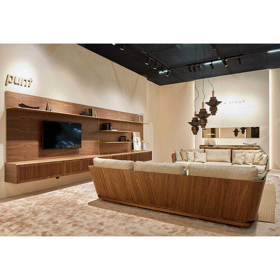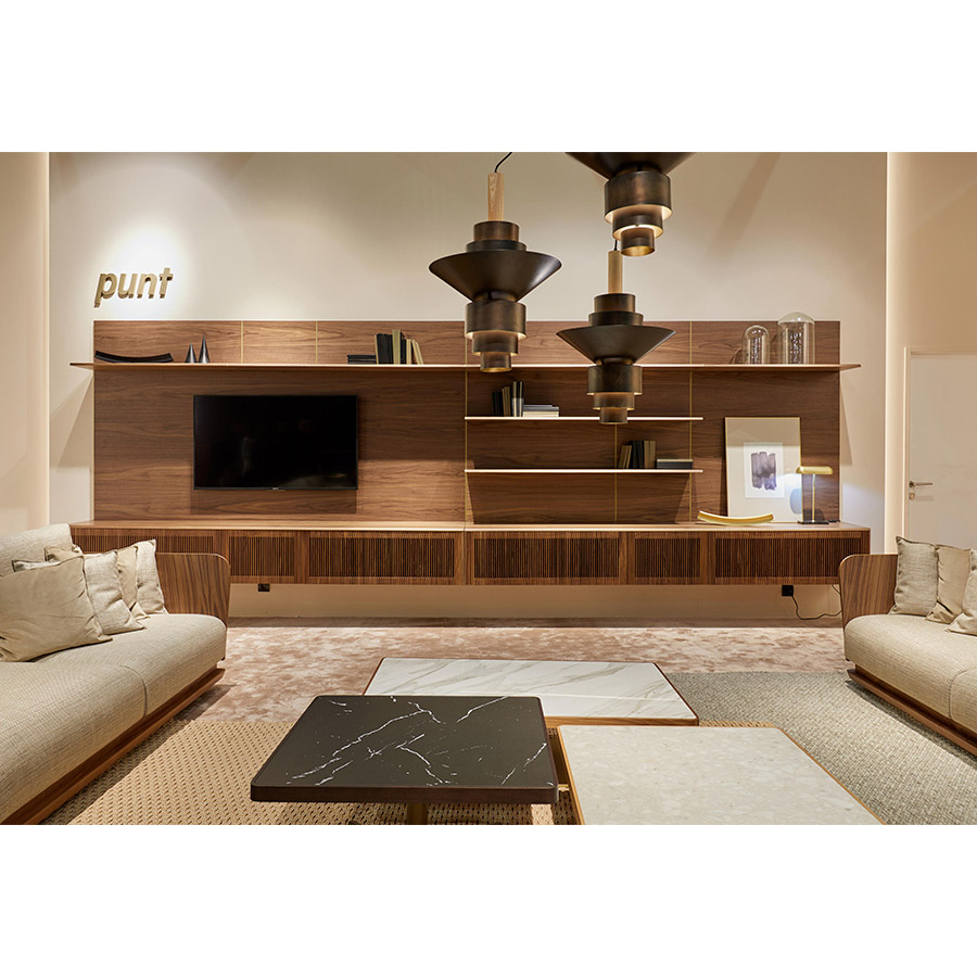 Malmö storage System is a collection of shelves and panels for Television that dress walls showing elegance to the space thanks to a continuous mesh of supreme quality.