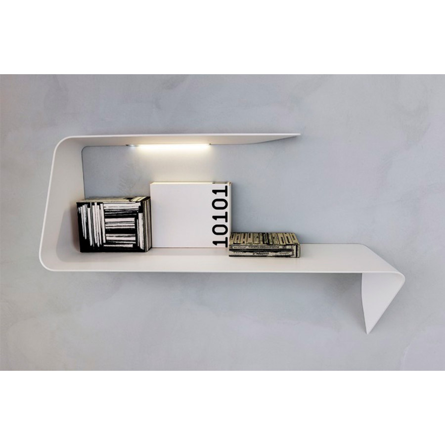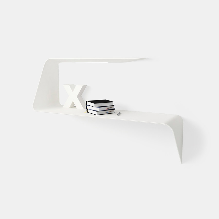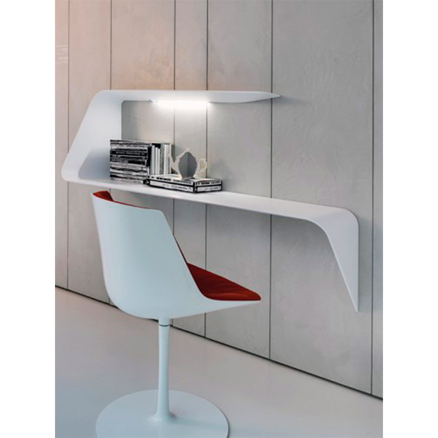 Wall shelf and/or desk. The wavy shape and tapered thickness add a strong visual impact to the design and image of the product. Mamba also features a white HD LED.