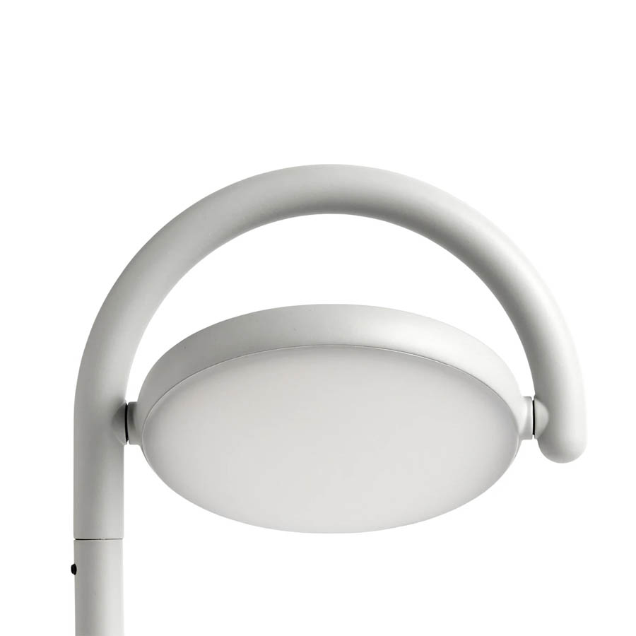 Created by the design studio KaschKasch and inspired by the sinuous tubing around local street signs, the Marselis family of table and floor lamps is characterised by a delicate balance of functionality and aesthetics, resulting in innovative modular designs with timeless quality. Designed for Hay, the elegant floor lamp consists of an arched silhouette crafted from die-cast aluminium and robust steel. The gentle light source is implemented from an adjustable tilting disc, enabling the user to create their preferred atmosphere of directional light. Available in soft black or ash grey the lights practical yet versatile design is suitable for residential and corporate settings.