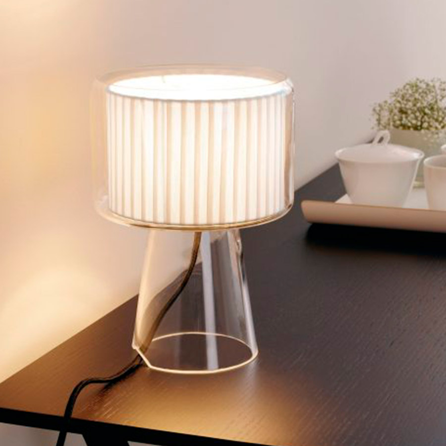 Javier M. Borrás Joan GasparThe Mercer family stands out for a subtle reversal of roles: the textile lampshade is inside a transparent blown glass structure.