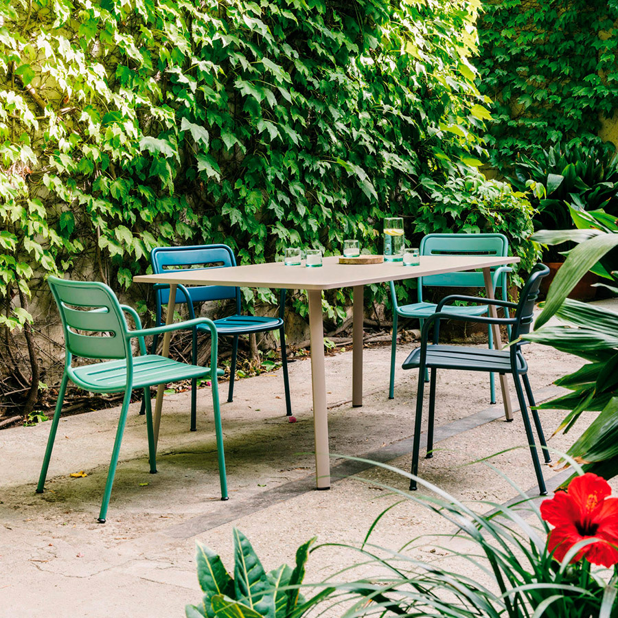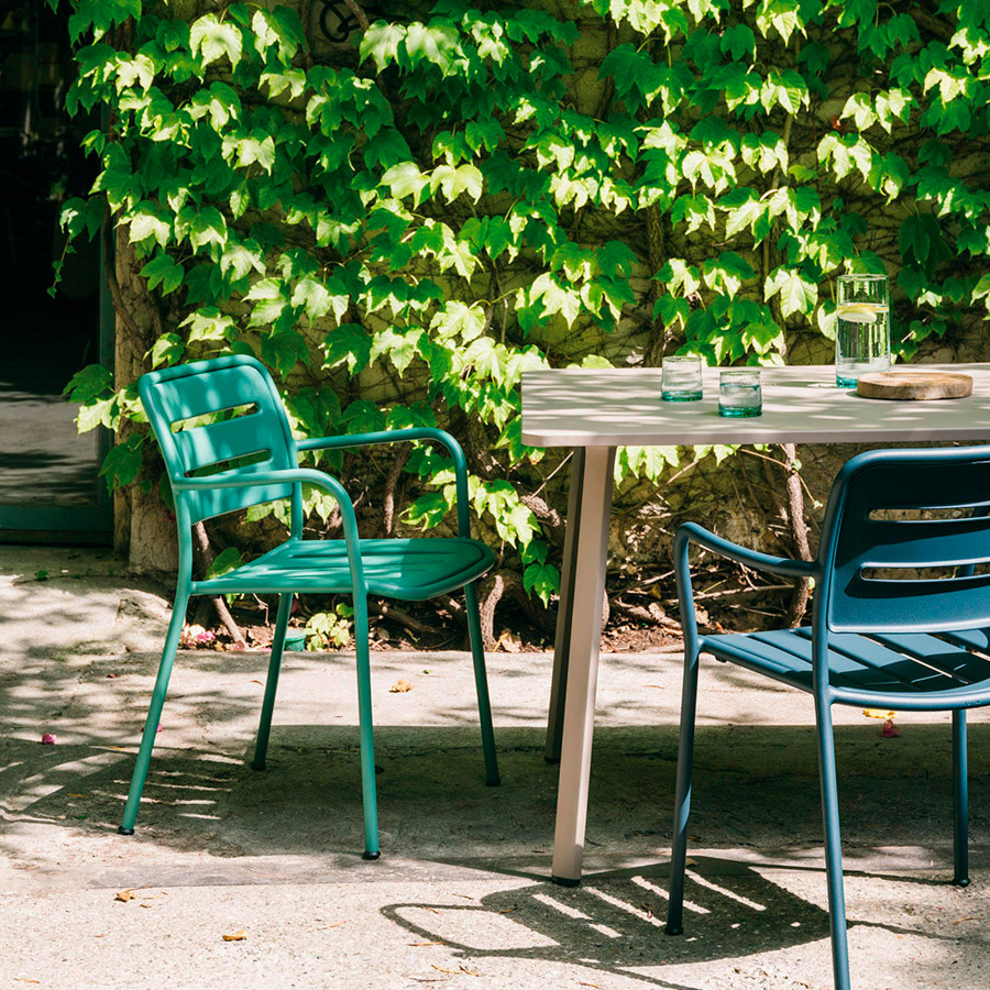 Jasper MorrisonVillage by Jasper Morrison is a versatile table for any outdoor setting, from a country house to an elegant coffee. The lightweight aluminum frame makes it easy to handle, while the neutrality of its shape doesn’t overshadow anything around it.