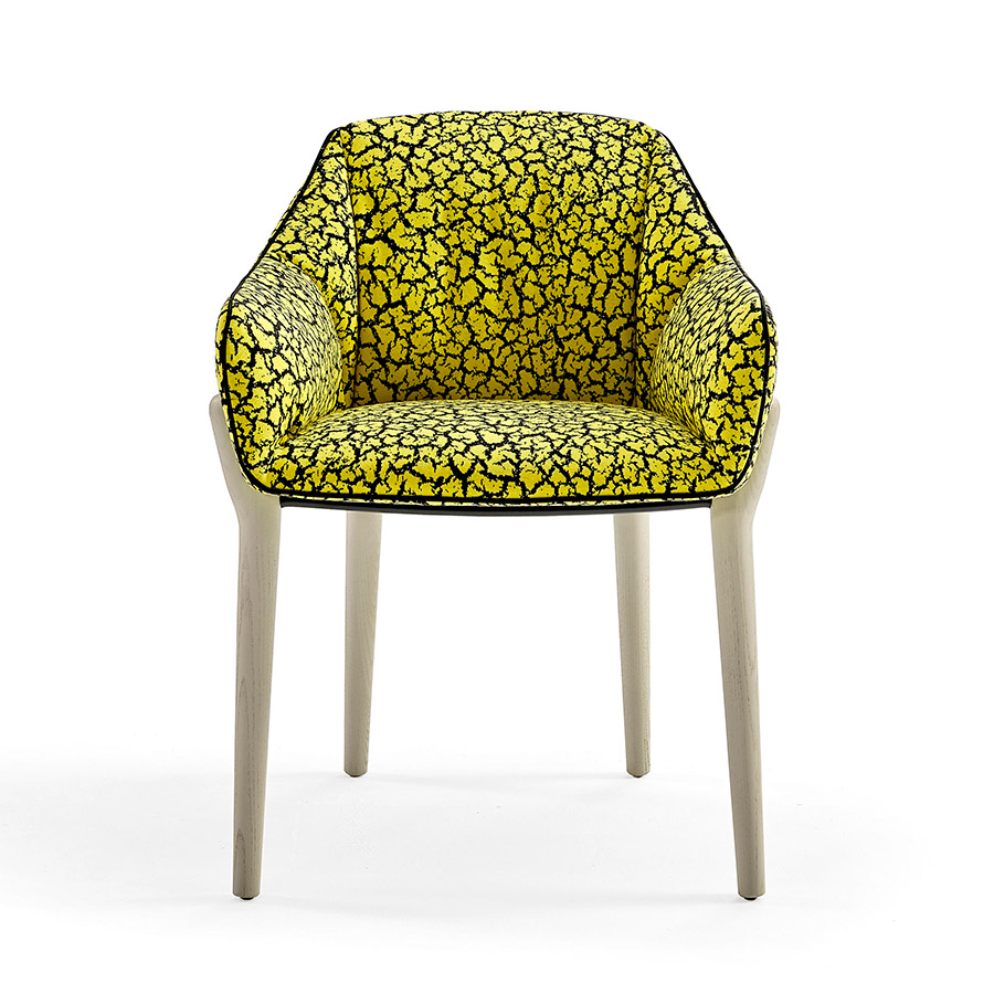 Rafa GarciaThe Nido and soft sitting chair is supported by an ash wood base resulting from artisan carpentry work. As if it were tree branches, the upper part of the legs hugs and surrounds the seat.