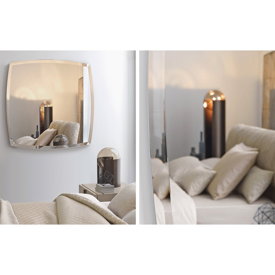 Series of mirrors available in three different sizes, made of beveled glass with a 4.5 cm frame, with a natural and smoked finish. Also available in the version with LED.