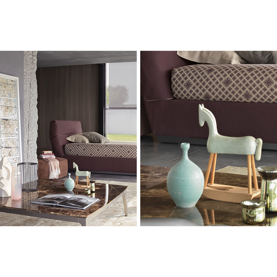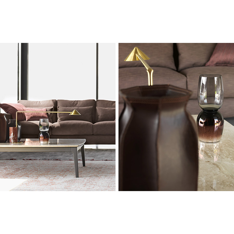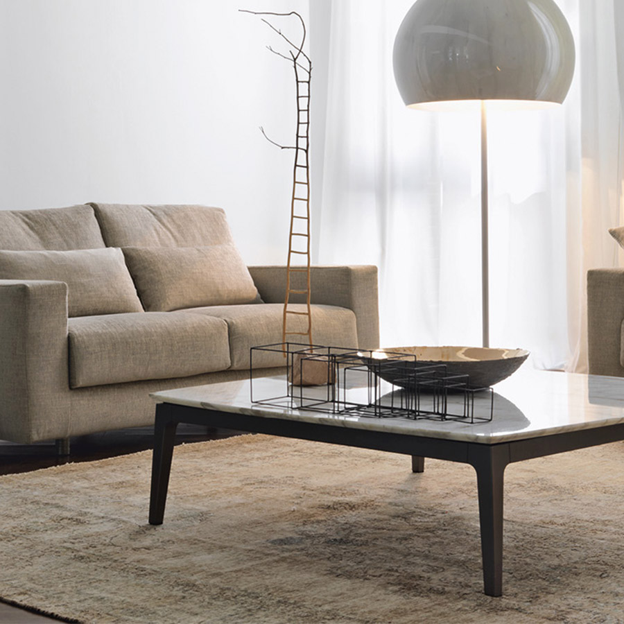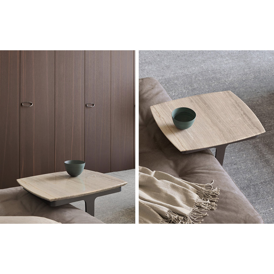 Emanuela Garbin Mario Dell’OrtoCreated as the ideal complement to the Olivier sofas, these coffee tables are characterized by their marble top, and combine very well with the other sofas in the Flou collection. Matt burnished structure.