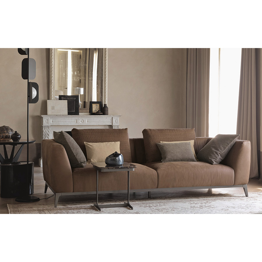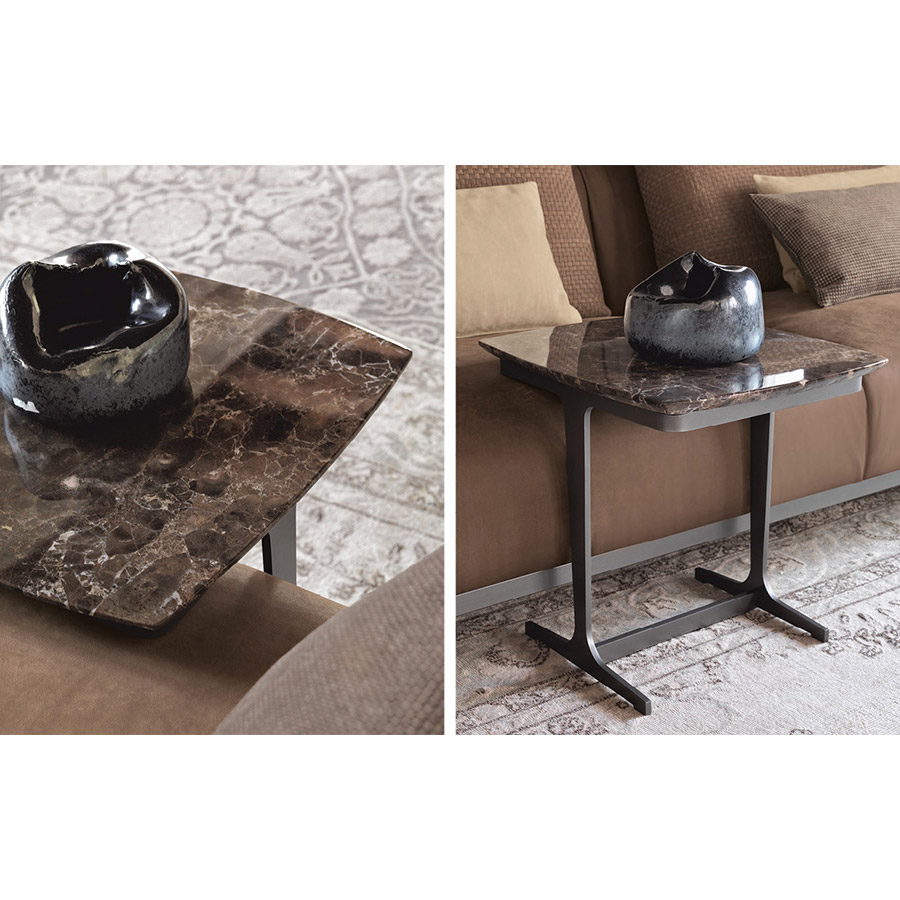 Created as the ideal complement to the Olivier sofas, these coffee tables are characterized by their marble top, and combine very well with the other sofas in the Flou collection. Matt burnished structure.